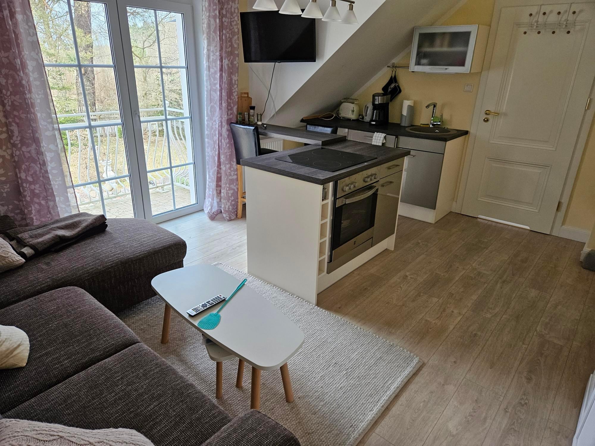 For entertainment there is a TV set with a German-language program and a built-in kitchen radio
