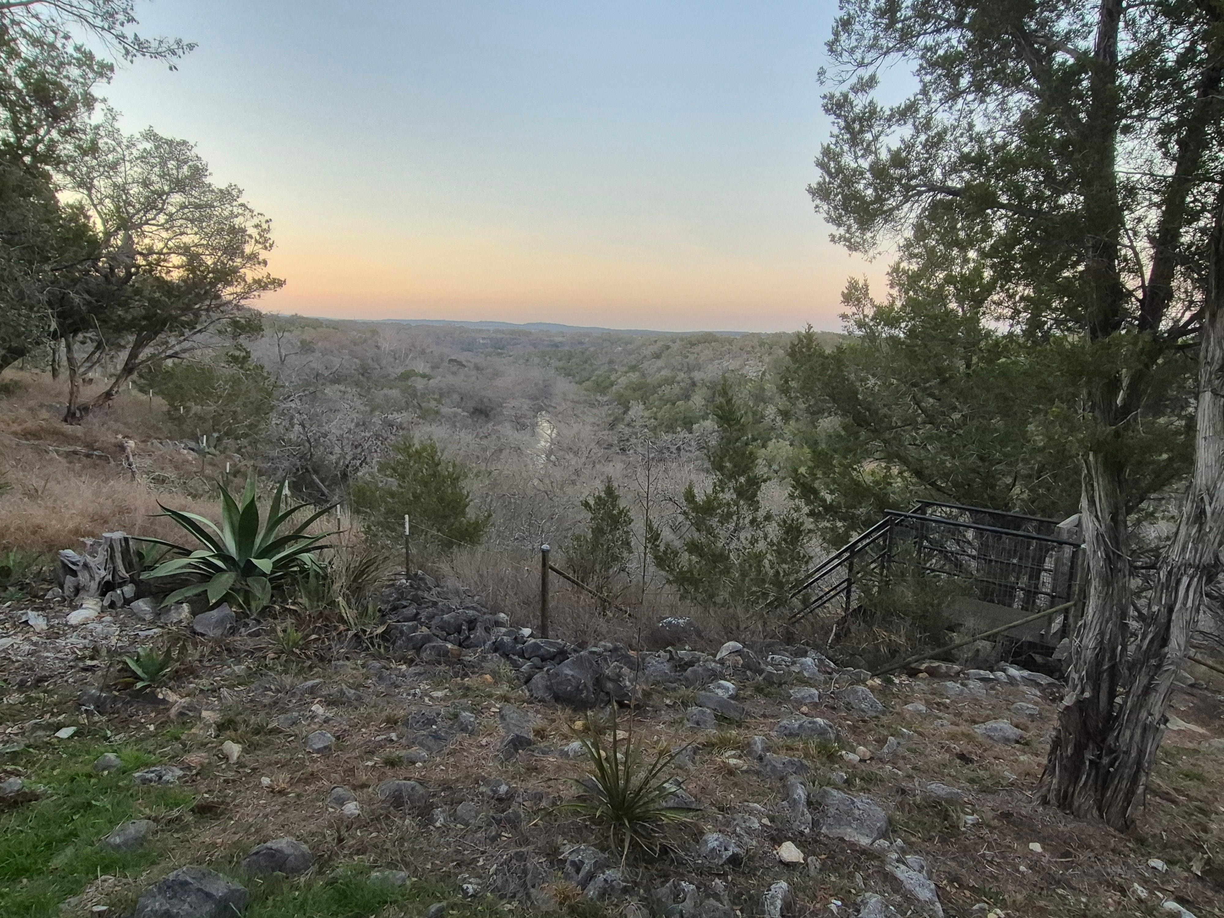 My husband and I wanted a comfy place to relax during our 5-day hike-the-hill-country get away. Charming stone cabin with lots of windows and porch that overlook huge expanse of undeveloped tree covered land. The kitchen is well-equipped as is the whole cabin. Comfy bed. The cabin is perched on a limestone bluff. Stairs lead to creek access. Many scenic parks are a short drive away!