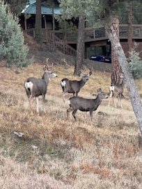 Estamos orgullosos de la limpieza "spic & span" de esta propiedad. Nuestra acogedora casa de campo le ofrece el aislamiento de una zona tranquila, rodeada de preciosos pinos susurrantes y mucha vida silvestre. Los ciervos visitan regularmente ... y los alces masivos caen ocasionalmente para un buen descanso. Siéntese en la terraza trasera y disfrute de todo el esplendor que la naturaleza tiene para ofrecer o visite algunas de las tiendas exclusivas de Ruidoso, así como los grandes restaurantes o uno de los muchos eventos que se realizan en la zona. La cabaña es de 2 habitaciones con cama adicional que duerme en un nuevo sofá cama tamaño queen en la sala de estar. Cubierta grande, cubierta. TINA CALIENTE, INTERNET, TV, calefacción central y aire! La mayoría de las veces, no necesitará aire acondicionado, pero si lo hace, esta propiedad lo ofrece. Siempre revise las condiciones de la carretera y el clima en los meses de invierno para estar preparado. Tracción en las cuatro ruedas y cadenas para la nieve se recomiendan en los meses de invierno.