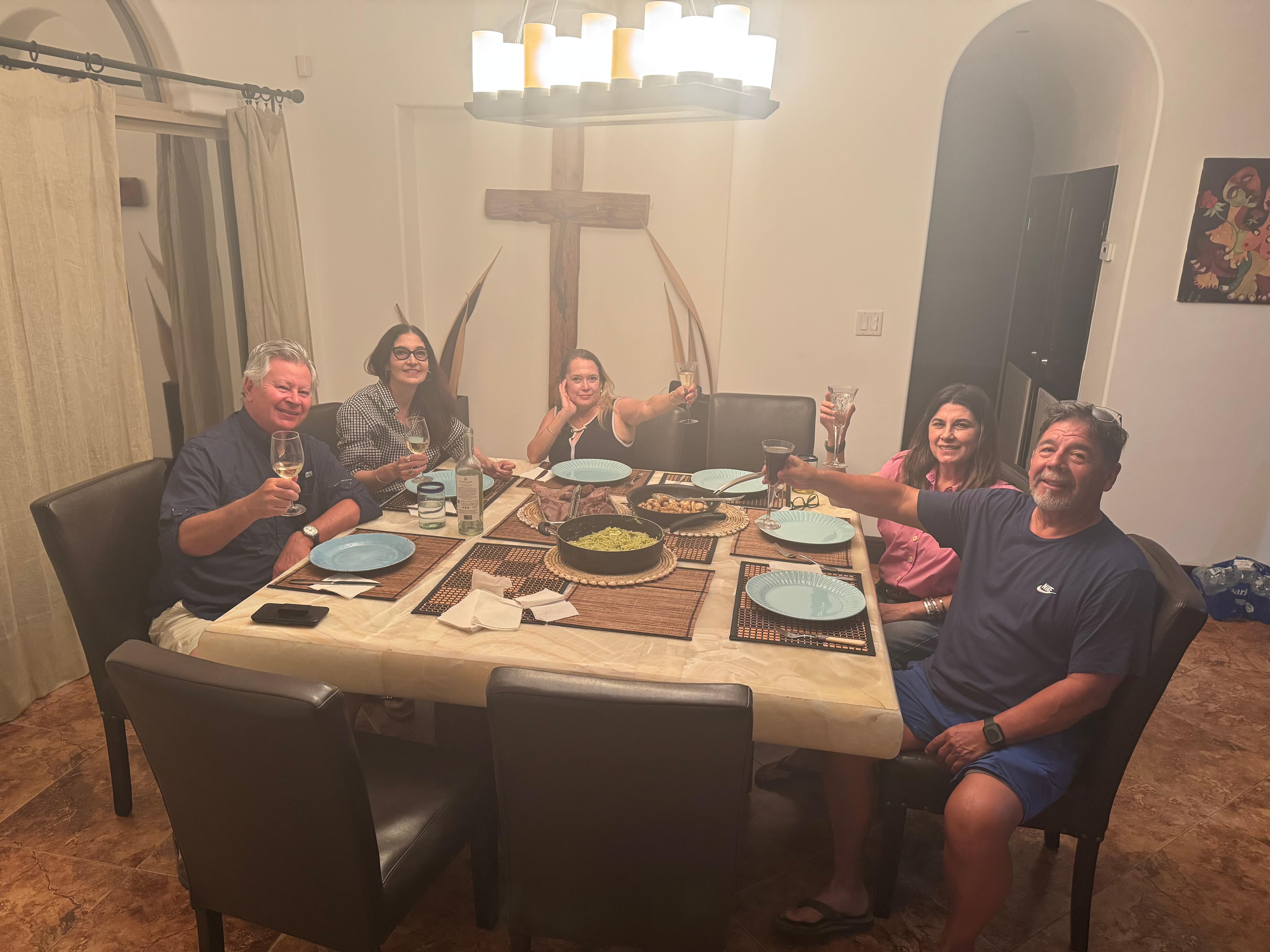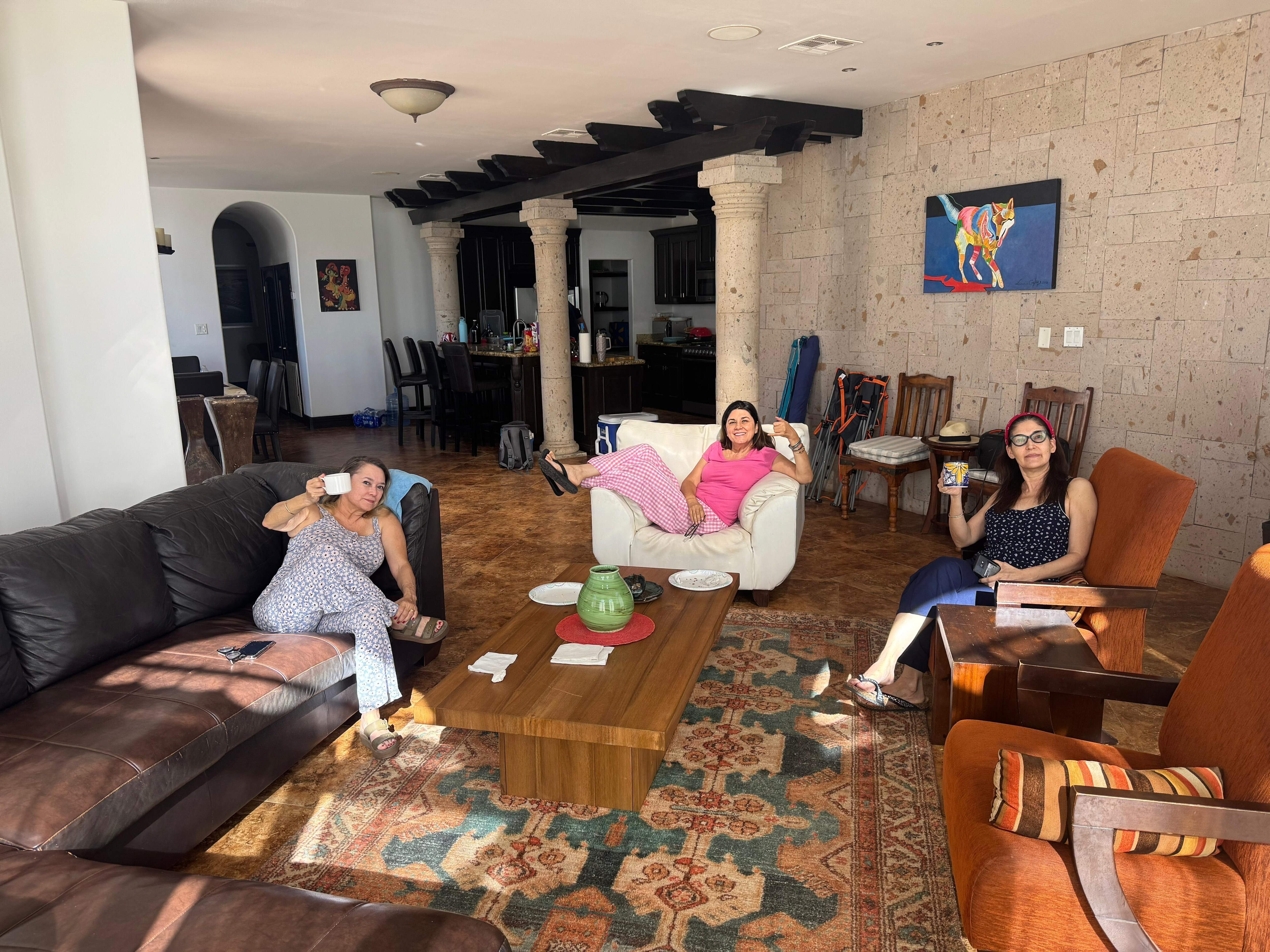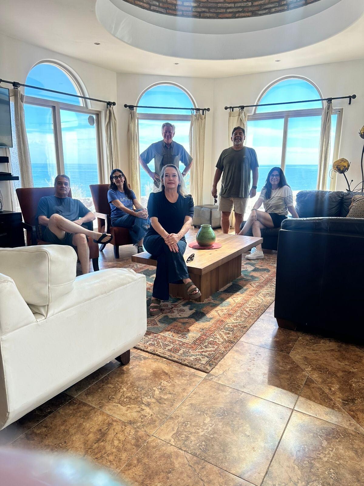 Enjoy the common areas that encourage comfortable, festive gatherings and offer panoramic views of the sea. Relax in the spacious living room that accommodates a large party under a brick ceiling dome. The gourmet kitchen is generous with ample room for the evening’s chef to prepare a banquet. Top of line appliances, walk-in pantry, fully equipped kitchen allow for unlimited possibilities. If you prefer dining al fresco, the roof terrace has a complete outdoor kitchen with a four-burner gas grill, separate food warmer and a sink for easy cleanup. You supply the “catch of the day”; everything else is provided for you. The dining room is equal in class, furnishings and ocean views...the big square onyx table is made for festive gatherings and fresh food. We even have a cook available that can take care of any size gathering.