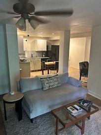 Although dogs can't stay for free, they are welcome at this apartment.