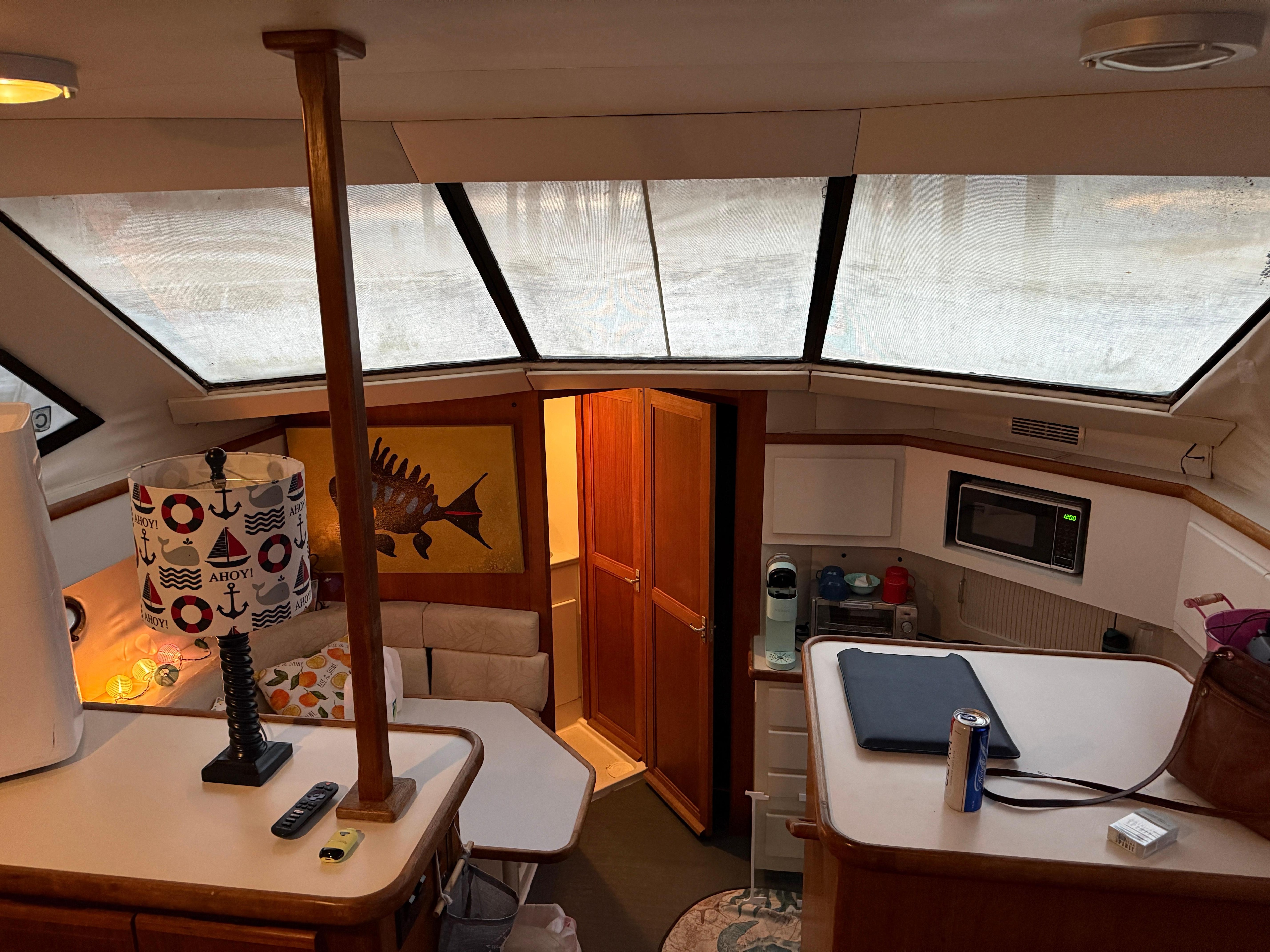No, you won't find accommodations with balconies at Price drop on Tybee Island -“ Island Time” -boat.