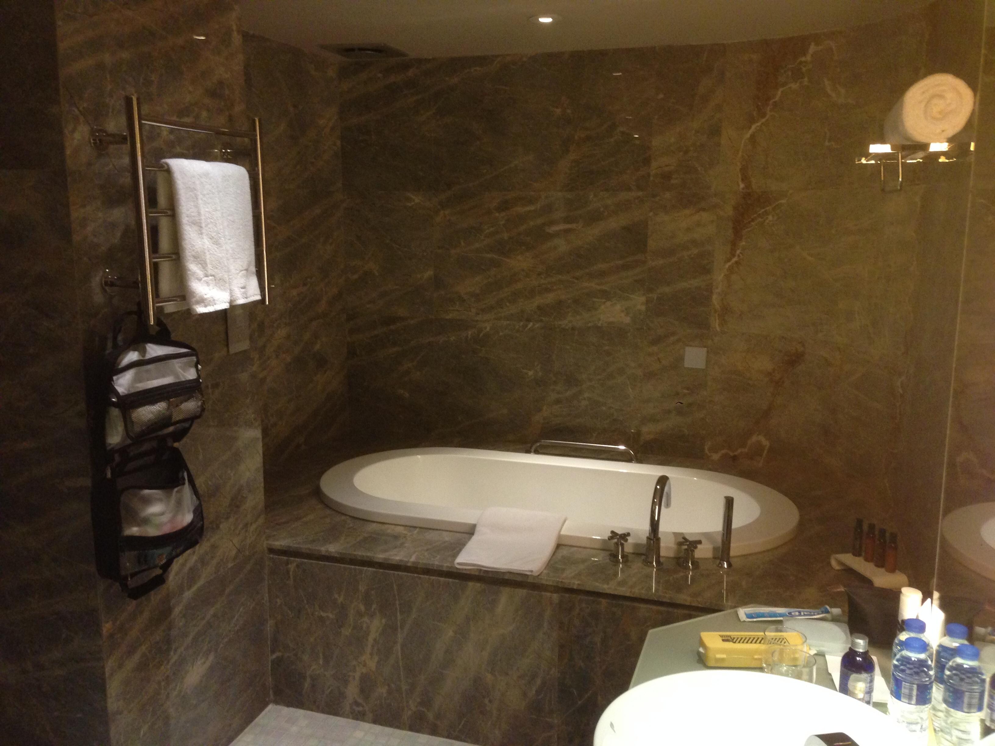 The bathroom is large with a full sized bath and a separate shower cubicle that was good. Lights over the vanity unit could be brighter as it was a bit dark to see one’s face makeup, shaving etc. Otherwise is was a nice bathroom.