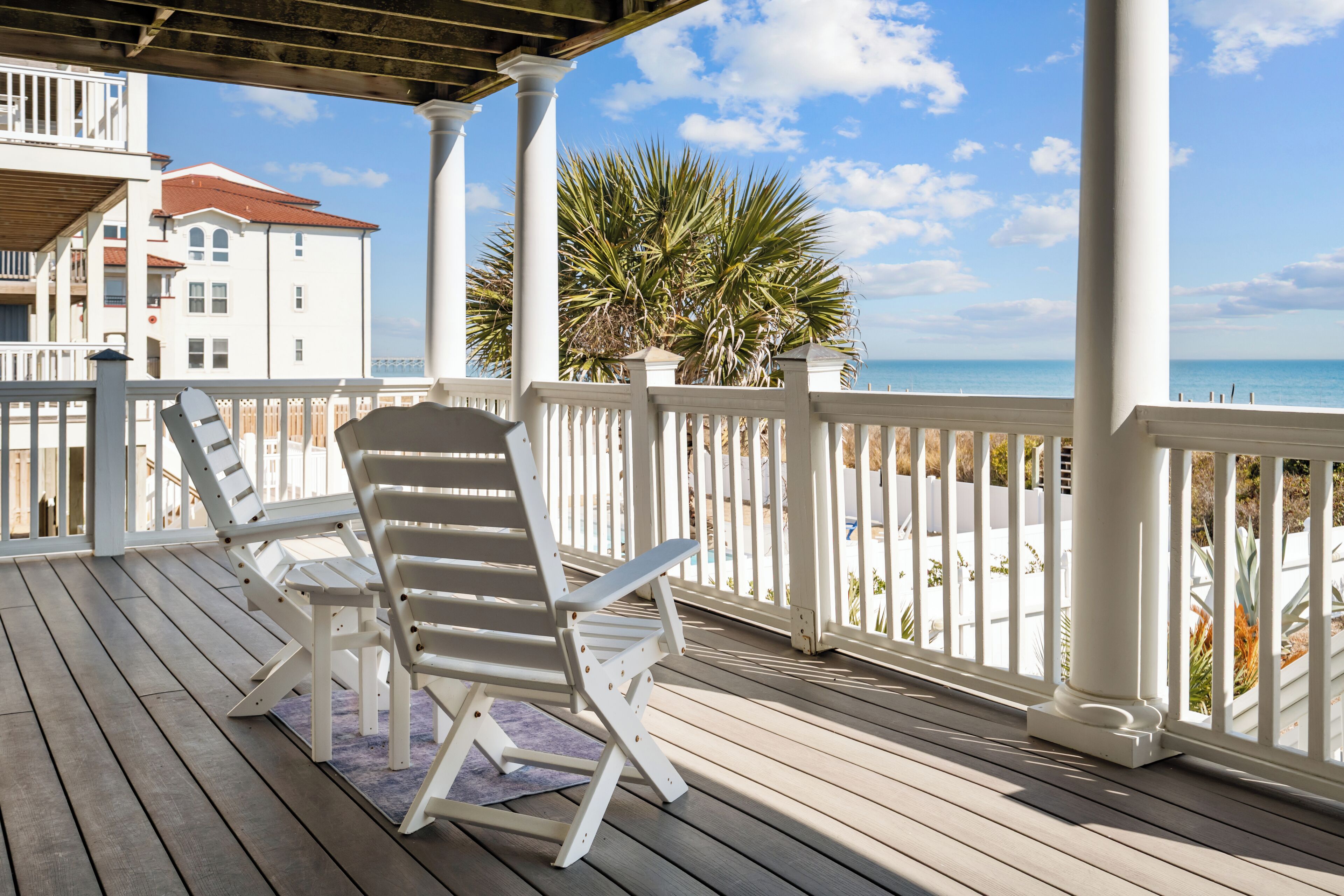What a beautiful property. My husband and I brought our 2 golden retrievers for a week stay and felt right at home. The direct access to the beach is unbeatable as well as the private pool with fenced in yard. Morning coffee looking out over the gorgeous ocean made for the perfect mornings. The house is located on a very quite part of the beach which was also very nice. We appreciated how well stocked the kitchen was from dishes to appliances and overall supplies. The house looks exactly like the pictures and is very well taken care of and kept. Overall we had a great time and a very comfortable stay. Would absolutely recommend staying here!