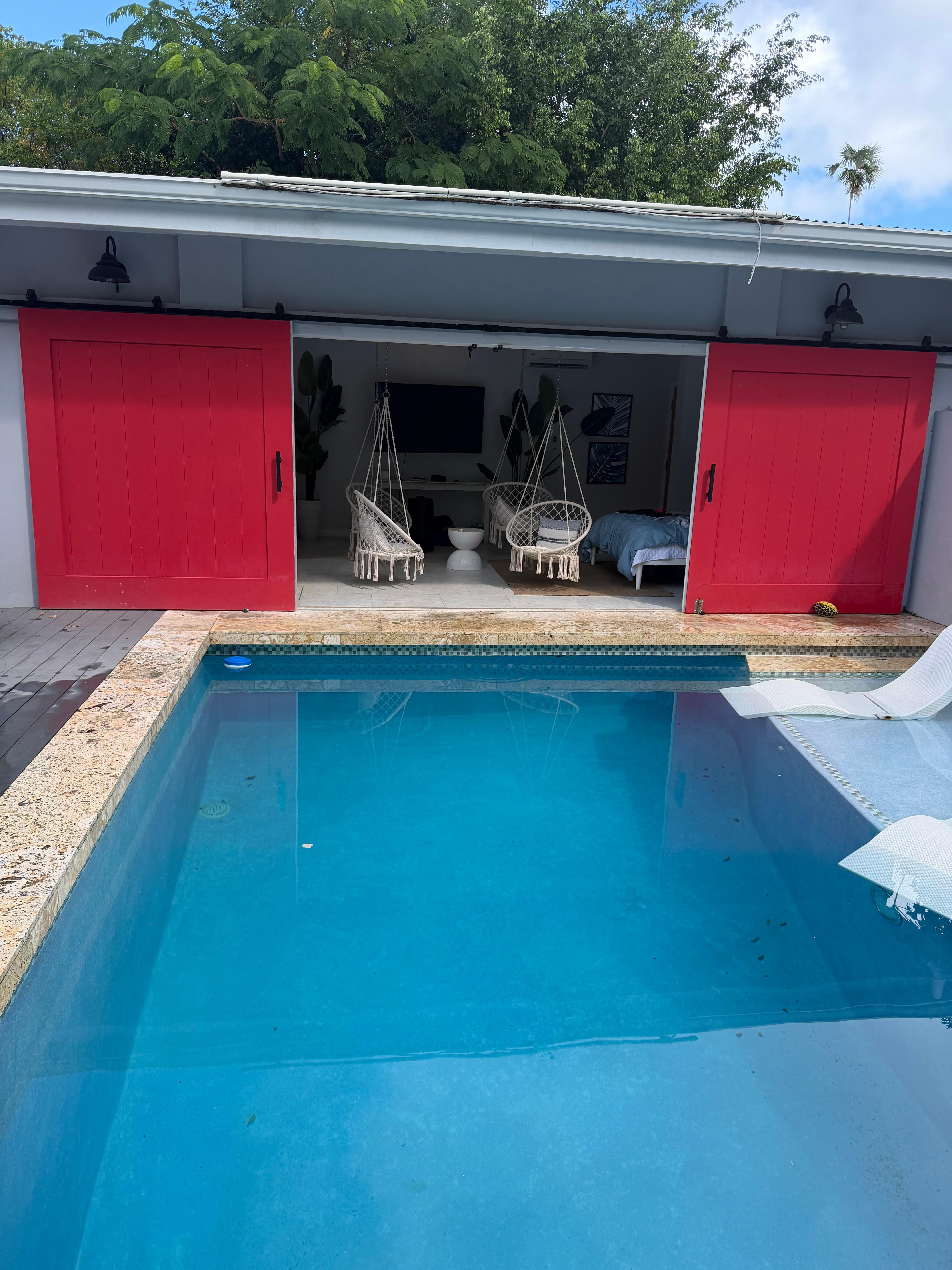 Queen bed, private entrance, ensuite bathroom, steps from the pool — ideal for guests seeking extra privacy or space to unwind.
