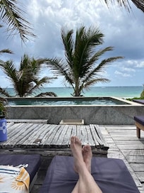 On beach with outdoor pool for sandy fun near Tulum Mayan Ruins