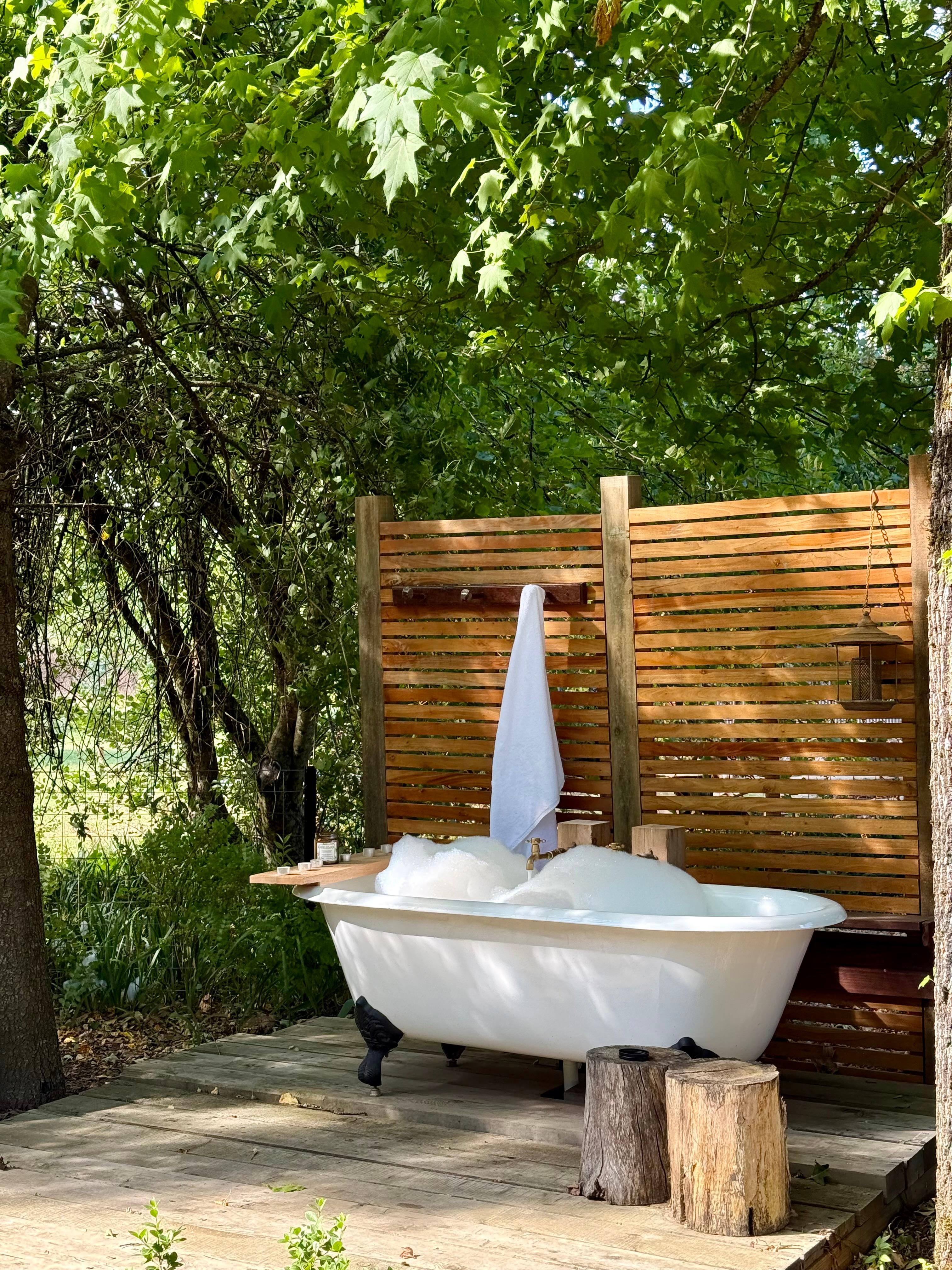 What a glorious place this is! I enjoyed a luxurious stay in this divine cottage. It is comfortably appointed with lovely touches including freshly baked treats and a sumptuous outdoor bath. I felt renewed and relaxed after my visit. I’m already planning my return with my husband! Thank you.