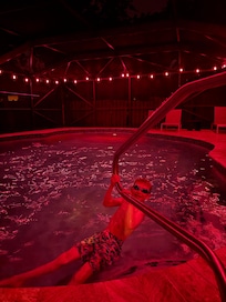 No, this vacation home doesn't have an indoor pool; however, there is an outdoor pool.
