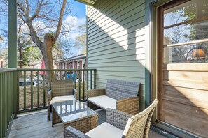 No, there aren't any accommodations with balconies at Historic Gem - A Short Walk to Downtown.
