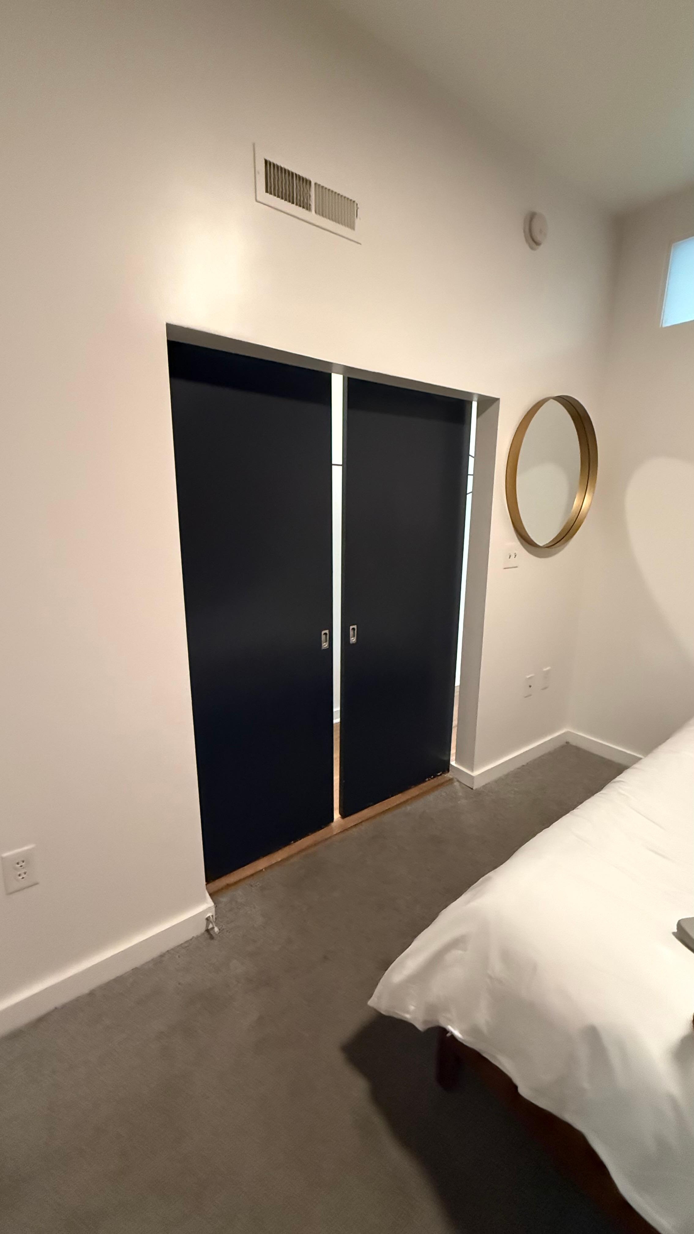 Overall the apartment with as described with 2 bathrooms, a loft and second bedroom and the location is outstanding. However, it was not clean. When we first arrived, there was an odor to the apartment, and thick dust on baseboards and fixtures. The floors were obviously dirty. There was tissue, unflushed in the toilet, food and sponges in the kitchen sink and dishes in the dishwasher. The carpet in the bedroom downstairs is filthy and had obviously not been vacuumed.I was able to find the broom and mop and purchased some cleaning supplies to make it better for our stay. Whoever comes after us will find it in better condition than what we found it.There are some repairs that need to be made in the downstairs bathroom. It looks like there was some water damage and the exhaust fan does not work, which probably contributes to the issue they're having with gnats. They are definitely working to combat the issue as evidenced by gnat traps and lights throughout. Also, while there obviously isn’t much privacy in the loft we were expecting the second bedroom to be private. There are barn doors hanging for the bedroom but they do not close completely. There is a place in the downstairs bedroom that is open to the staircase, so even if the doors could close, someone could look into the bedroom from the stairs. The loft bathroom door is not private either.The bedrooms could also use side tables, or some sort of furniture, especially downstairs, where there is no accessible closet.