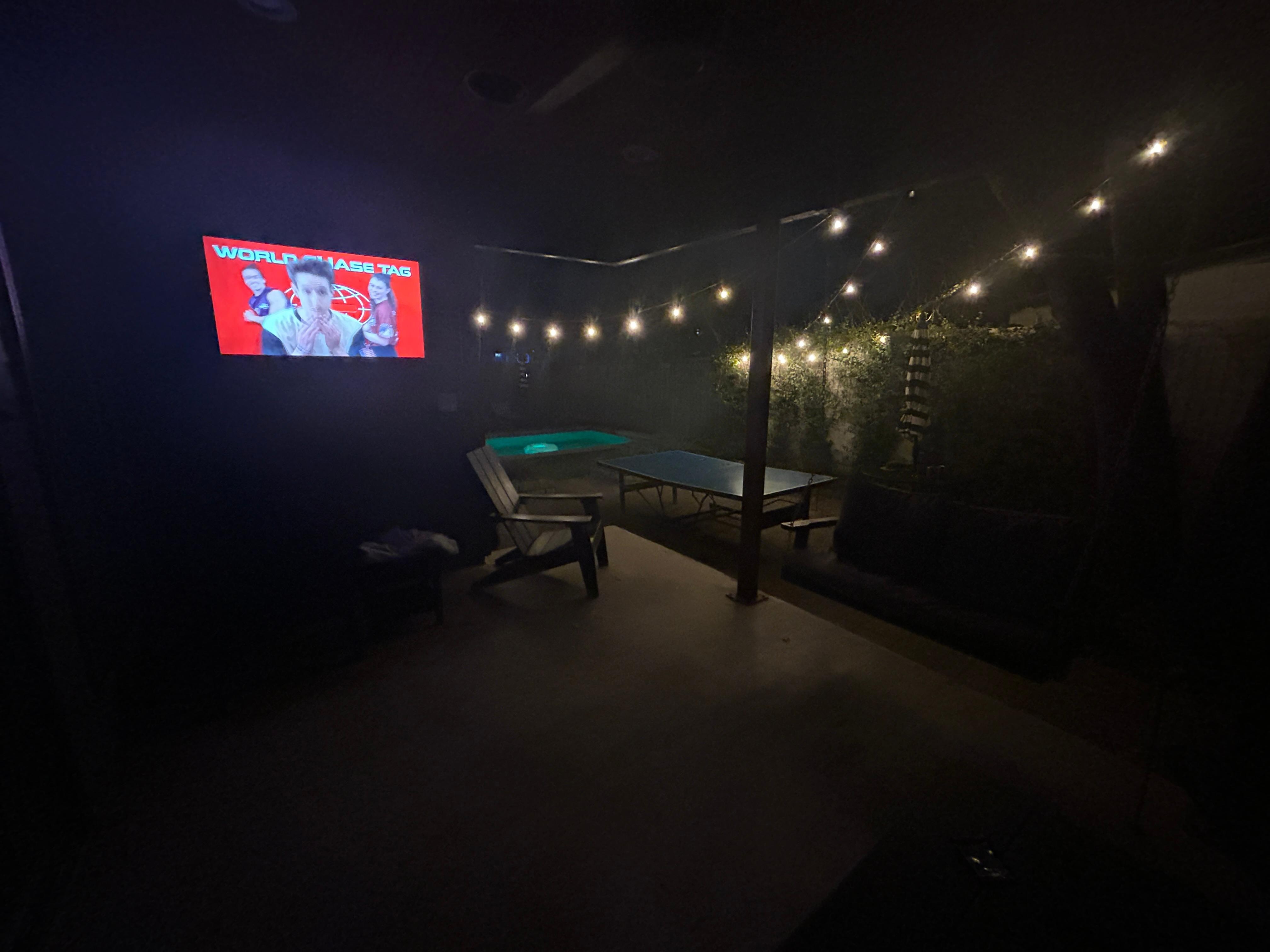 • Maravilloso patio trasero que incluye un televisor, parrilla para barbacoa, hoguera, muebles frescos y luces para fiestas
