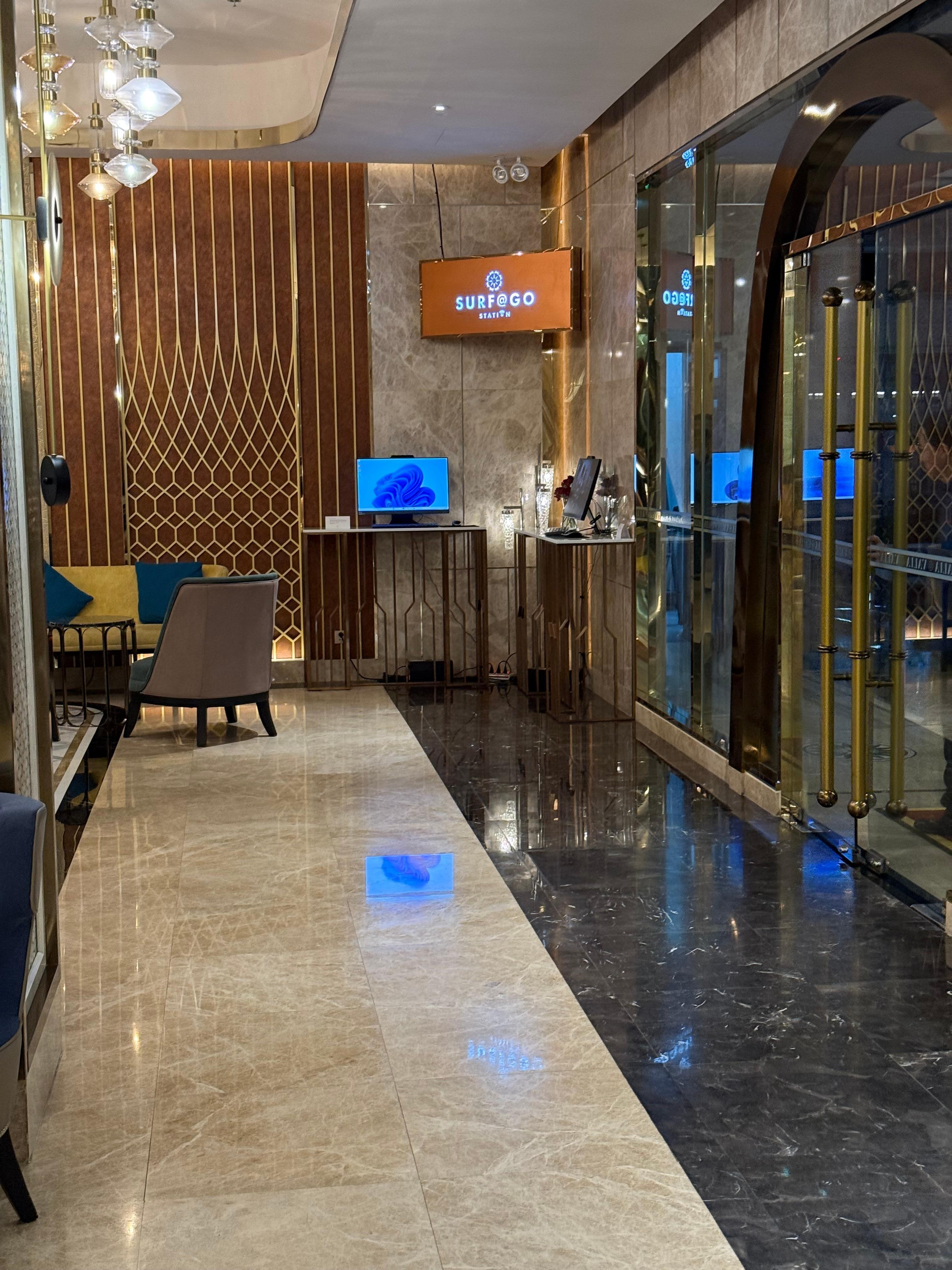 Ya entrando en el hotel, nos han decido de quedar en el sofa, y nos pidieron los pasaportes. No nos han dejado ir a la recepción para ver que hacen con nuestros pasaportes, solo dicieron que tenemos que esperar 10 minutos. Para hacer que? Después nos pidieron nuestra tarjeta crédito. Fuimos a ver de como lo usan. No les gustaba. Han notado el numero, el numero de PIN y los datos por detrás. Lo hemos retirado. Después de enseñar la habitación, estaba un clima de olores químicos de reforma, pintura, de no poder respirar. Hemos intentado de abrir la puerta a la terraza, pero estaba cerrada - porque no había barrera de limite - del 13. piso! La vista a una gasolinera y a McDonalds. Un desastre total. Quizás han bajado el precio para un hotel de 5 estrellas para empezar el funcionamiento, pero no se permite asi. Vamos a seguir si nos llegan fraude por el uso de nuestra tarjeta crédito. Sentimos mucho de tener que comentar este pero es un peligro.