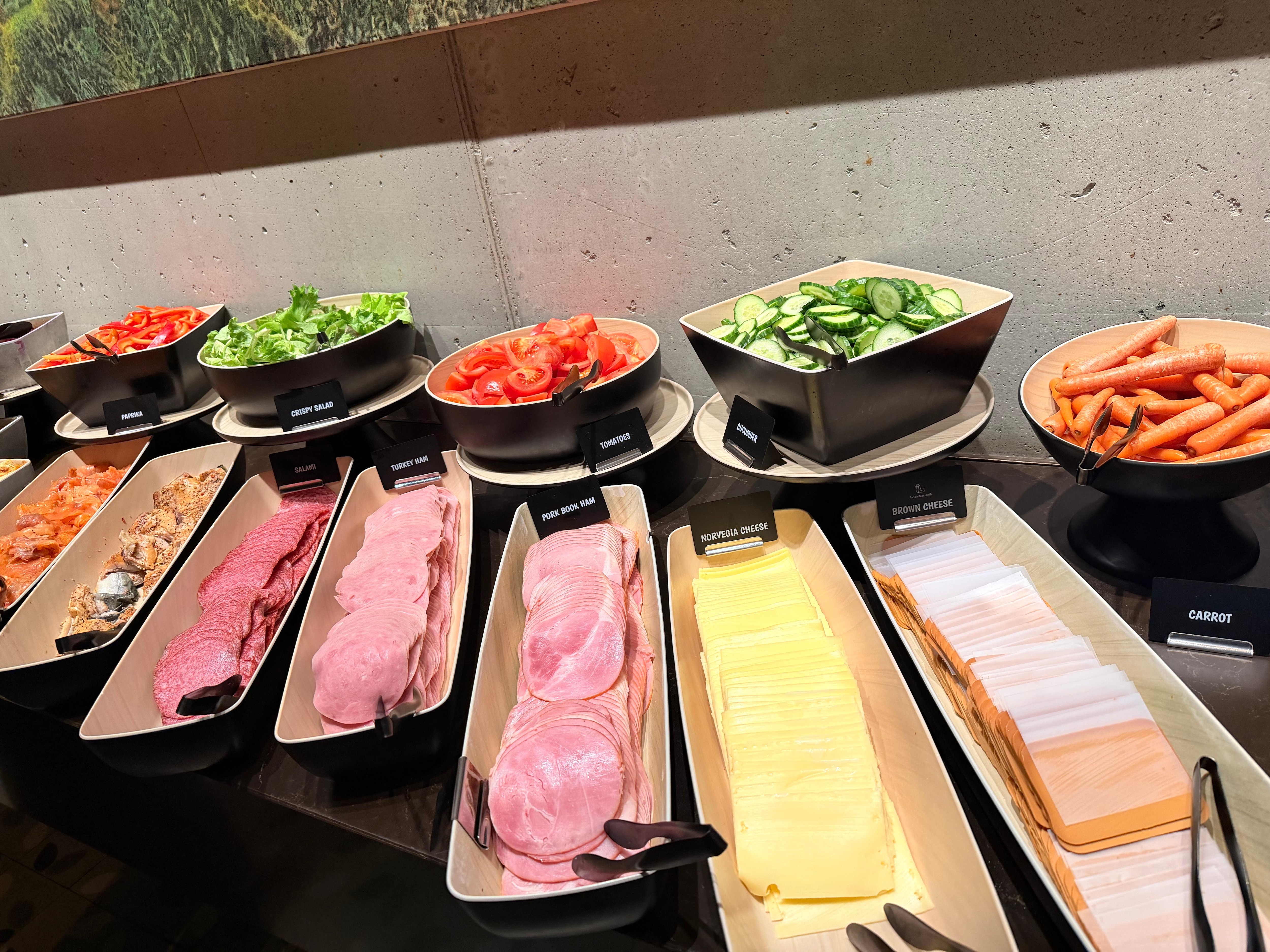 Desayuno buffet incluido bastante bueno con salmón ahumado, queso marrón, huevos, embutidos, lacteos, panes y bolleria, algo de frutas, cereales y mermeladas. Bastante completo.
