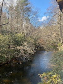Cabin with an amazing porch view, creek & hot tub