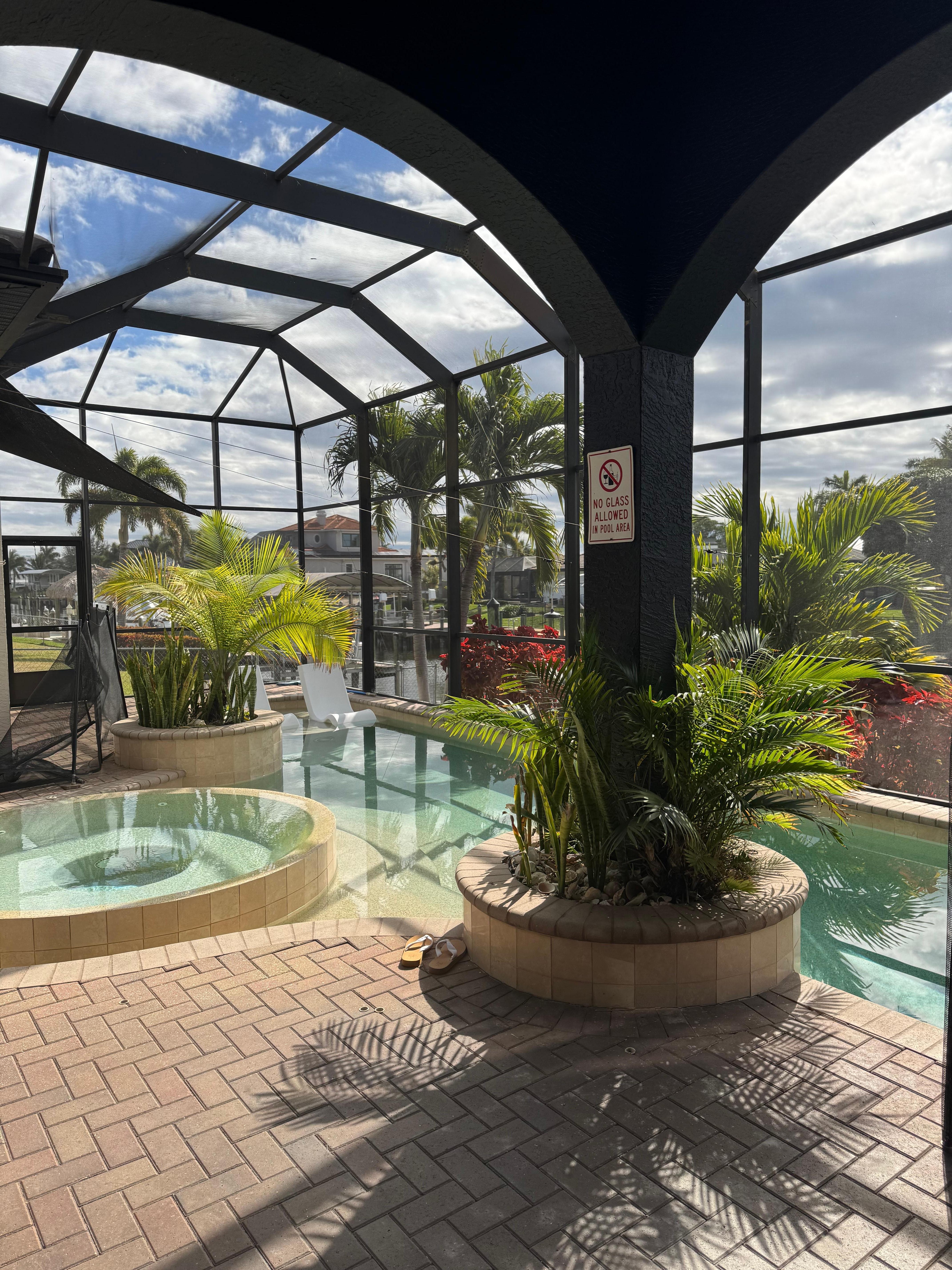Beautiful property in a nice location on the canal system. Laughter rang among four couples who have been doing life together for 45 years. This house was big and beautiful! We each had our own king bed with en-suite. House was immaculate and welcoming. Kitchen was huge and had everything you could think of that you might want. The game room was well utilized. The pool, jacuzzi, and lounge area were fabulous. We met Kevin and had several fun conversations. Very friendly man that was a helpful source of information, We didn't meet Sheila unfortunately, but would hire her for decorating our house, as she did a knock out job on this one!You won’t be sorry if you rent this place!