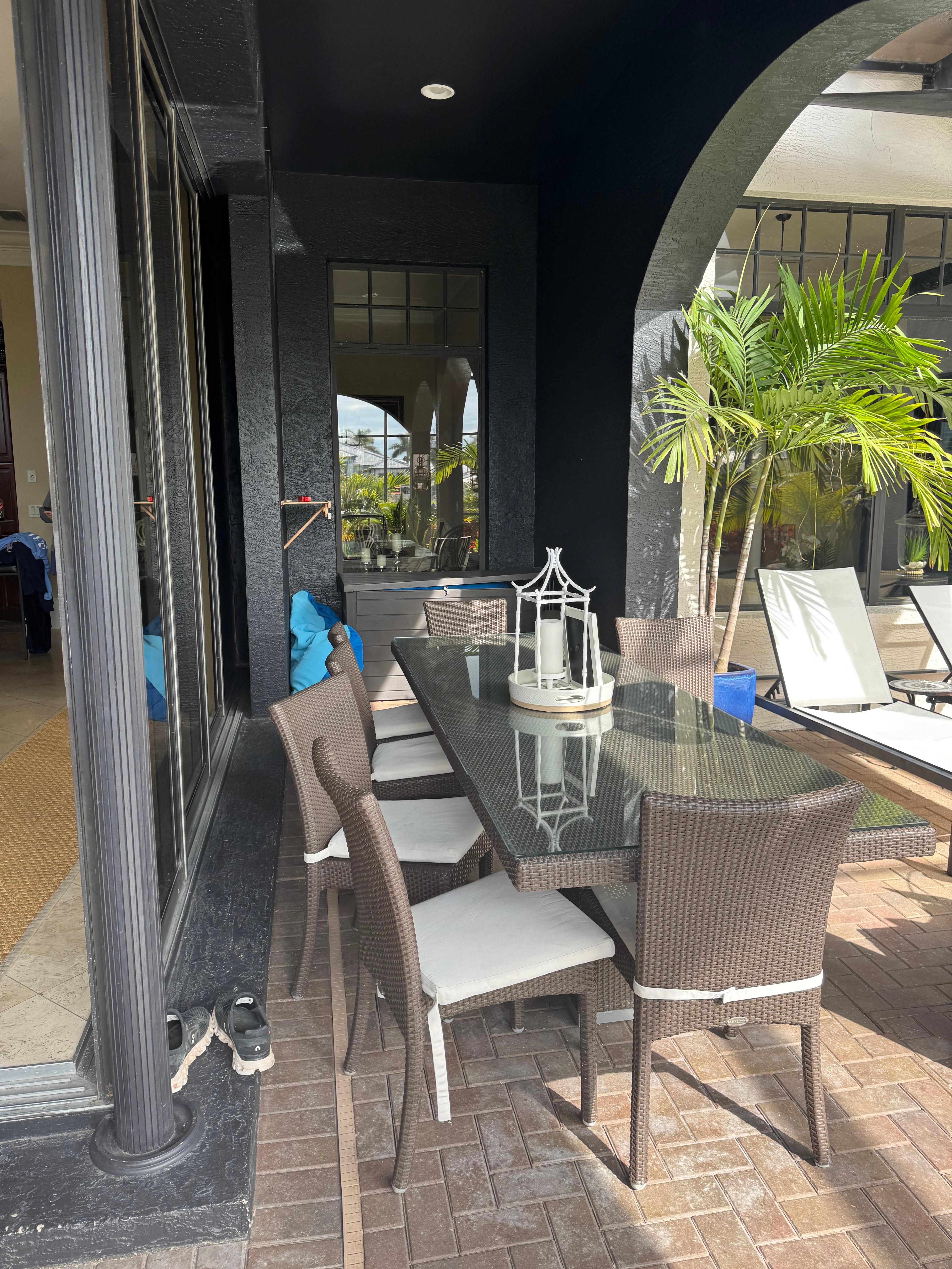 Five couples stayed here for a full week. It was wonderful for each couple to have their own bedrooms. Four couples had their own en suite bathrooms. One couple had a half bath, but shared the shower with another couple. The house is beautifully decorated. Spacious living room area off the kitchen for gathering and lounging. A nice smaller living room area for a quiet time or small gathering. This was the most well stocked kitchen any of us have seen at a VRBO. Plenty of dishes, mugs, silverware plus all the extras like blender, toaster, coffee maker, pizza pans, cutting boards and more. The pool, hot tub area was wonderful. Lots of space to spread out and soak up the sun. The large dining table in the pool area was utilized a lot during the week. The lounge area with the TV was nice in the evenings to enjoy some sports. The pool table room and game room in the double garage are amazing- although we spent more time at the pool. The weather was too perfect not to stay in the pool area and soak it up. The gazebo area on the dock was enjoyed for gorgeous morning sunrises and evening wind downs. Well stocked with beach towels, chairs for a day at the beach, beach and pool toys. The surrounding neighborhoods are quaint and quiet and perfect for daily walks. We enjoyed many walks to the Rotary Park. Loved all the burrow owl nests along the way. We would definitely consider booking again for a return trip to the area.