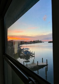 We enjoyed our stay at the property. It appears to have been recently updated and a lot of thought went into it. The kitchen has newer appliances and was stocked with many plates, flatware, cookware, etc. Everything was bright and cheerful throughout the unit.The property is one of six condos in the building - it is not a stand-alone property. The family room and main bedroom had a great view of the river, and it was nice to enjoy that aspect. There are docks off the back of the property with kayaks and lifejackets available to use at no additional cost.The bedrooms were very comfortable. The main bedroom was adequate in size with a very comfortable king-size bed and across from the main bath is a walk-in closet. The pillows were also quite nice. We had plenty of storage room as well.The second bedroom has two twin-size beds. There was a dresser/night stand in between the two beds.There were two bathrooms. The main bath had a very nice shower, vanity, and toilet. It was well-lit and comfortably sized. The second bath had a tub/shower combination as well as a toilet and vanity. The family room/den was also very nice. It was comfy and roomy, and the five of us had plenty of room to relax and take in the amazing views of the Banana River. The unit also has a full-size, recent model washer/dryer, which is very convenient.Parks, grocery stores, the ocean, and other amenities are within driving distance. From the family room windows, we saw dolphins one evening.