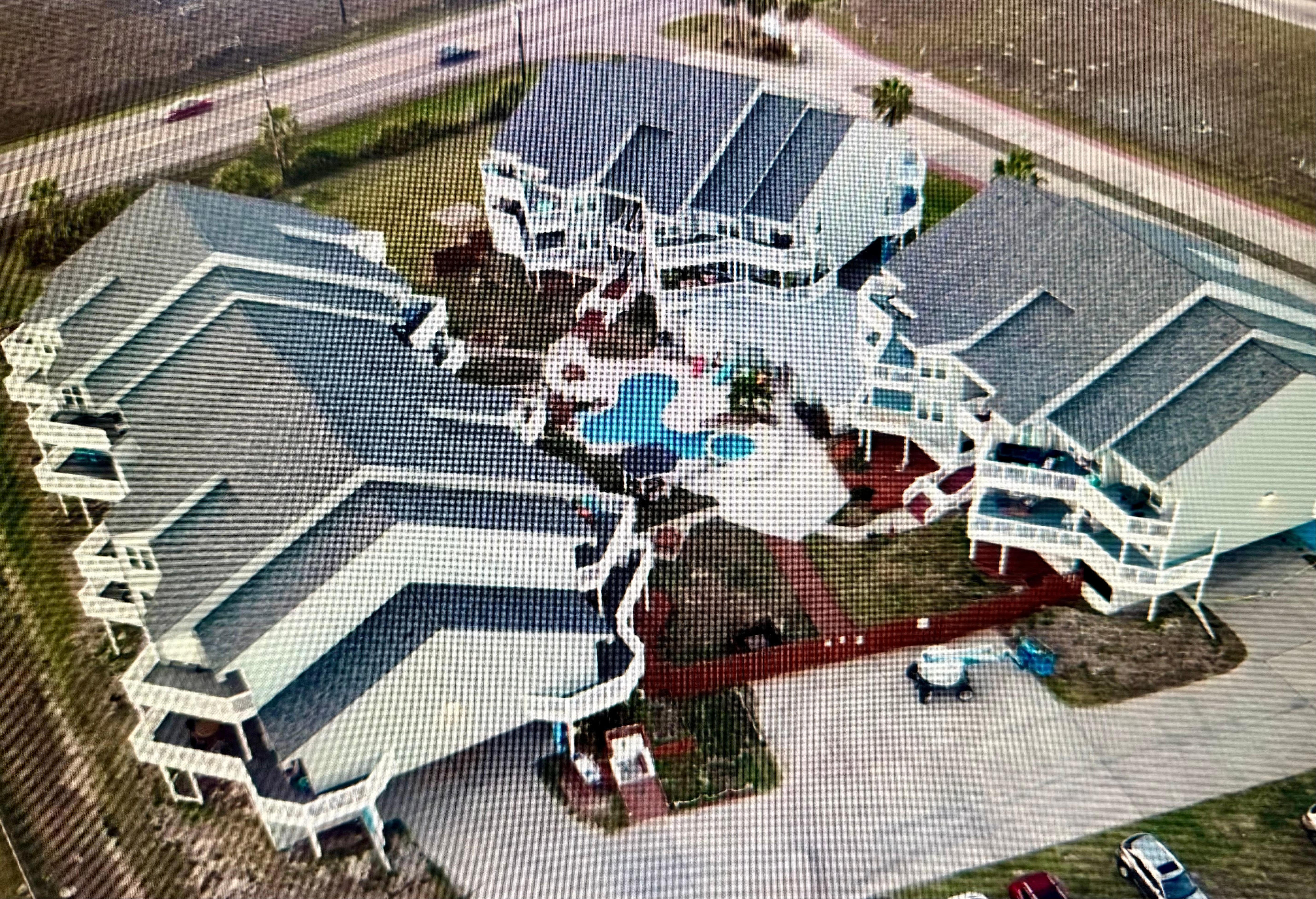 The property is about 10 minutes by a gravel trail, then stairs and a boardwalk to the beach. The location is convenient to restaurants at Cinnamon Shore, Port Aransas, and North Padre Island. The large deck could easily accommodate 6-8 people enjoying a view of the highway and the Laguna Madre in the distance. A sliver of the Gulf is also visible. The pool and hot tub are well maintained. Lots of towels and bedding. When we arrived there was a problem operating the door lock; Evolve Customer Support helped-thank you! Also, the dishwasher was full, some of the dishes in the cabinets were dirty, Kleenex dispensers were empty, and the chairs out on the deck had bird poop. When we prepared to check out we found there was no dishwasher detergent, though we were expected to start the dishwasher. The owners gave us a partial refund on the cleaning fee for our inconvenience, but even so we felt the fees were too high. Expedia won't let me say how high they were.