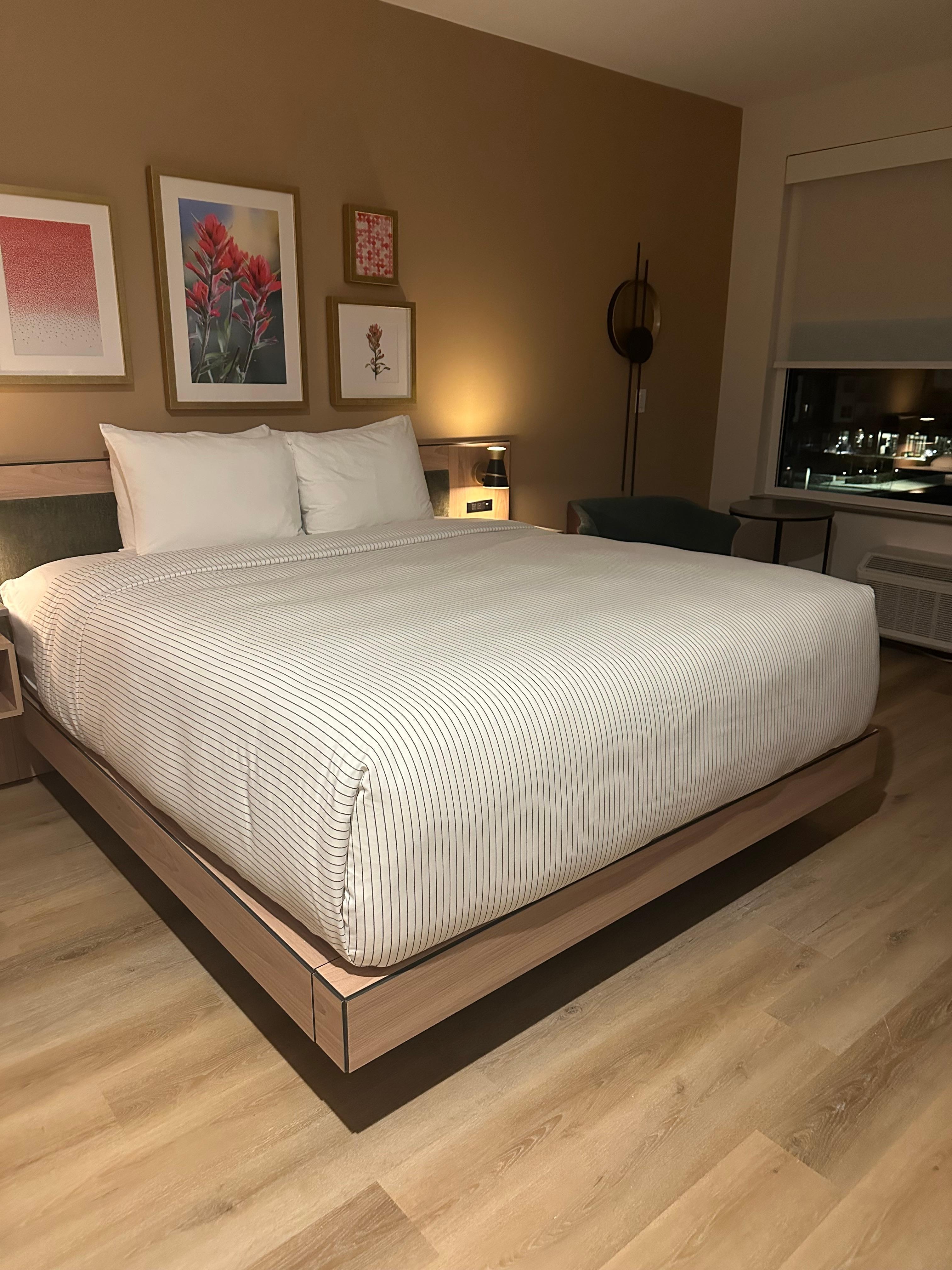 Room was super clean. Bed was amazingly comfortable. Nice size tv. Love staying at Cambria hotels. They never disappoint!!!