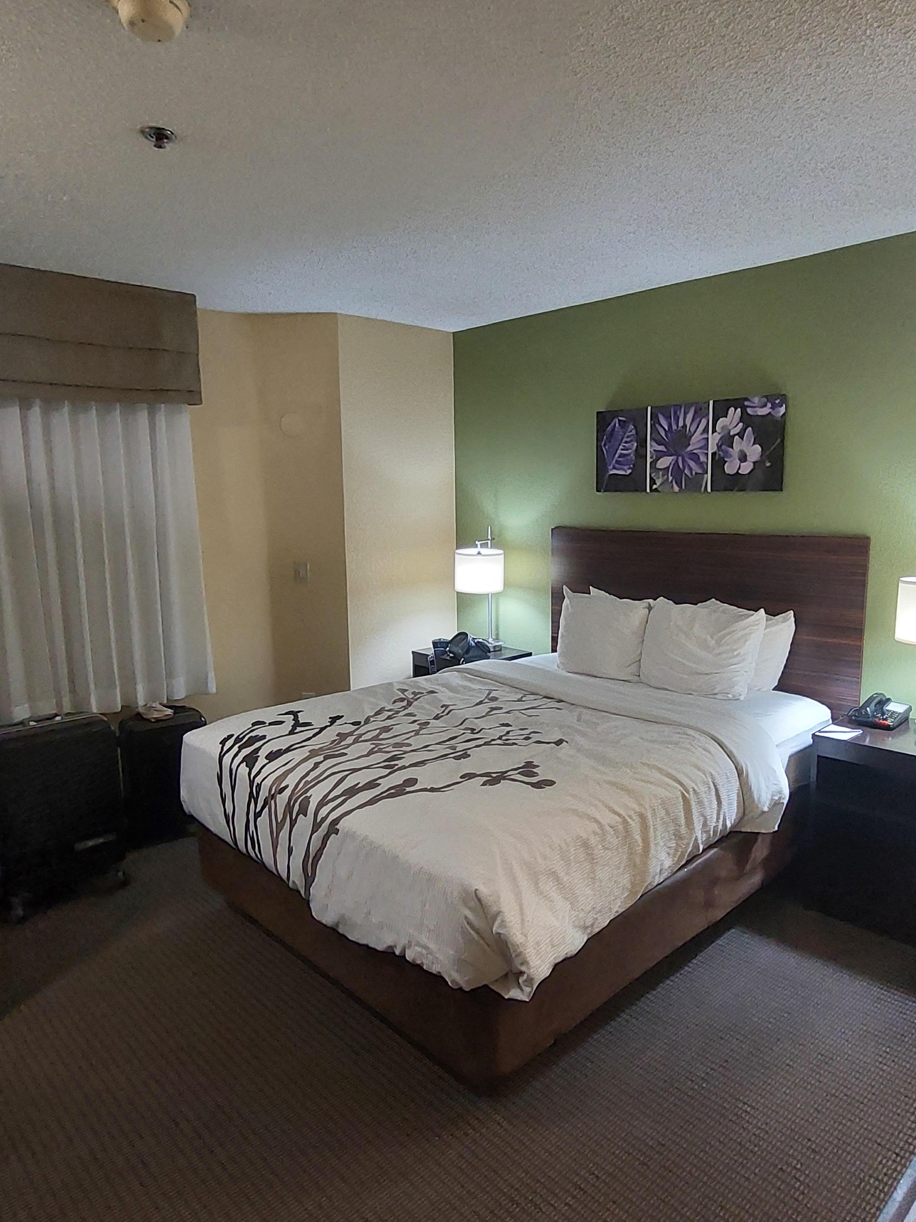 I like this place, I've stayed here before. I forgot how awful the TV was, just regular cable with no channel guide. This time the pillows were remarkably uncomfortably. They'd clearly been washed which is nice, but washed so many times they were basically sacks full of hard lumps. Otherwise i like the place. The beds are comfortable for hotel beds. Everything is clean and smells good and I love the 70s style yet somehow space age showers. :)