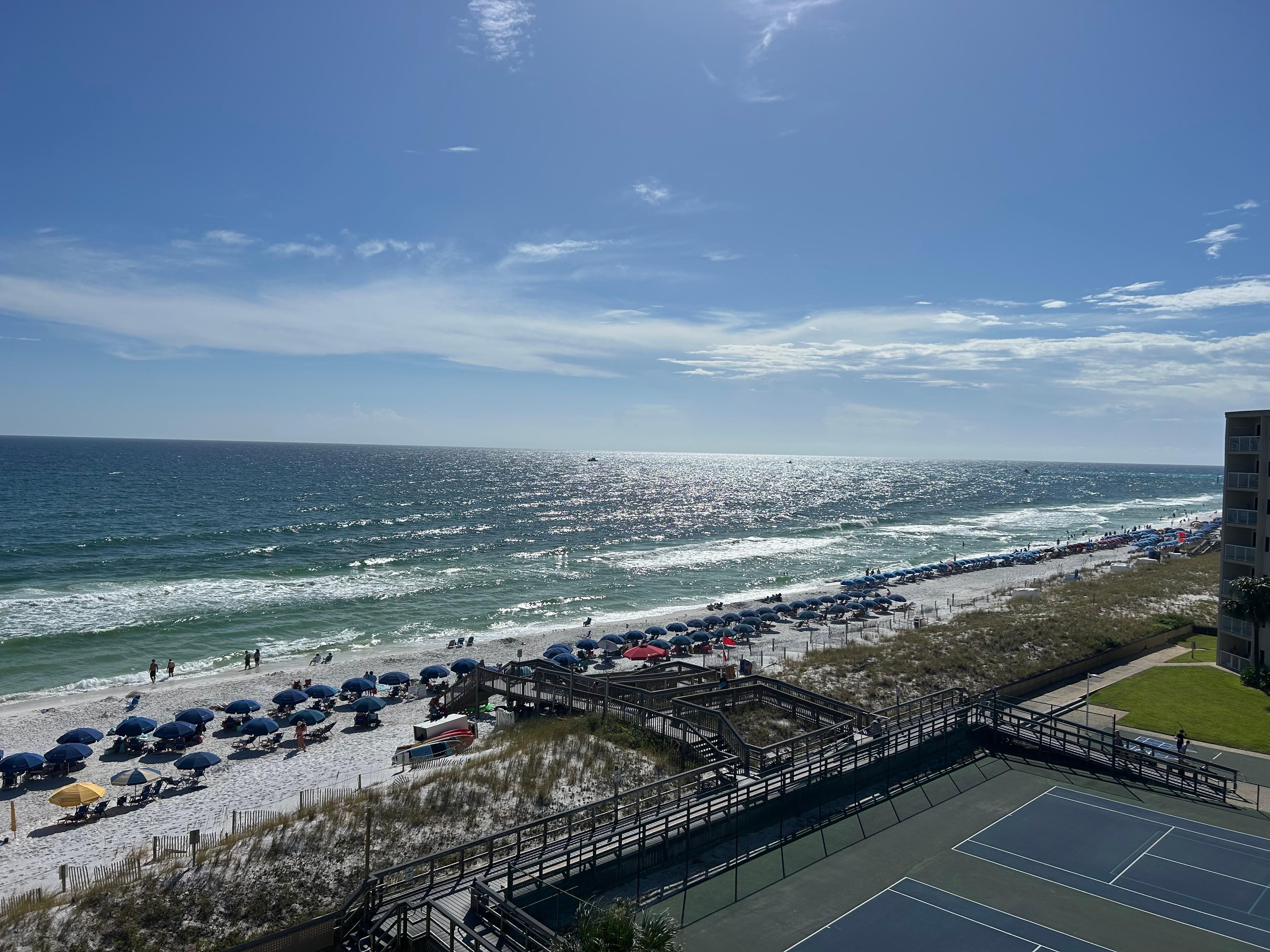 Venga a relajarse en este condominio frente al mar 2BR / 2BA en el Holiday Surf and Racquet Club en Holiday Isle. Este condominio del sexto piso tiene una impresionante vista del Golfo. La cocina se completa con nuevos electrodomésticos de acero inoxidable, encimeras de granito y gabinetes nuevos. La cocina también ofrece una gran área de preparación y asientos en el bar. Esta unidad tendrá capacidad para un máximo de seis personas con una cama king en el dormitorio principal, cama king en el dormitorio de invitados y un sofá cama doble en la sala de estar actualizada. Hay televisores de pantalla plana en las dos habitaciones y sala de estar para su placer visual. Las comodidades incluyen piscina (climatizada en temporada), dos canchas de tenis iluminadas, tejo, salas de ejercicios para él y ella, sauna, 24 horas. seguridad, parrillas para barbacoa, lavandería de monedas y una sala de juegos para los niños. Las sillas de playa y las umbellas están a solo unos pasos. Reserve su ESCAPE DE PLAYA HOY MISMO!