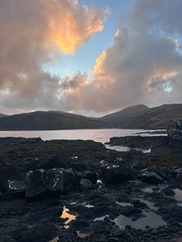We had a magical stay at Rosie’s stunning property. We were greeted by Rosie and her adorable pups Tessa and Marley upon arrival. Rosie was an extremely hospitable host! The kitchen was stocked with fruit and eggs and pasta and butter and milk, the works! We loved knowing that before or after long days out exploring Isle of Skye, we had food there for us. The house is beautiful and clean and decorated with Rosie’s gorgeous artwork. We walked down to the beach first thing and experienced the most beautiful sunset. We wanted to stay forever, and although Rosie offered for us to stay another night if we wanted, we had to depart. Such a daydream of a stay- we’ll be back!