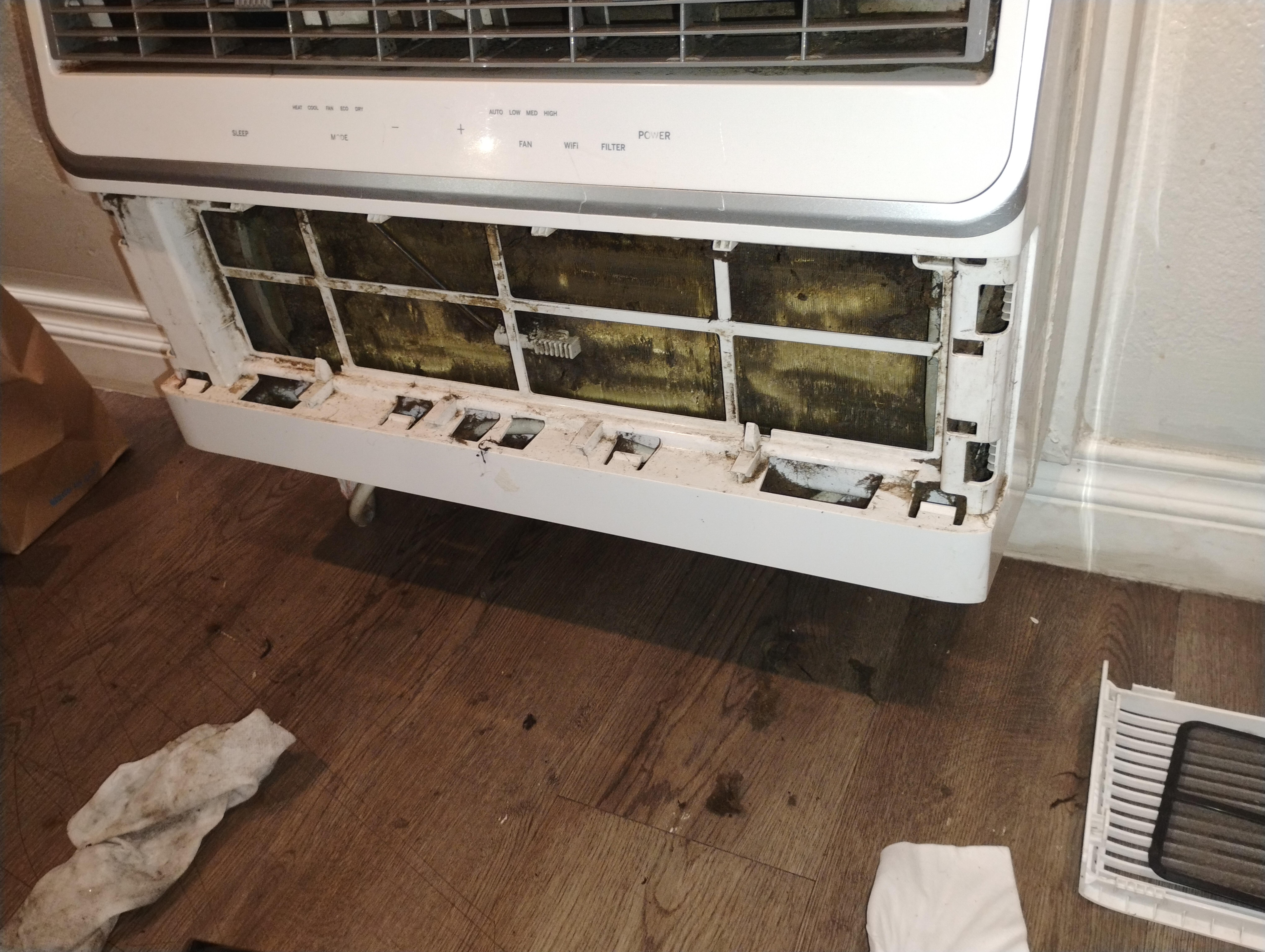 This is the heater slash air conditioner the filter and inside the filter on the cooling fins of the machine look like they hadn't been cleaned ever