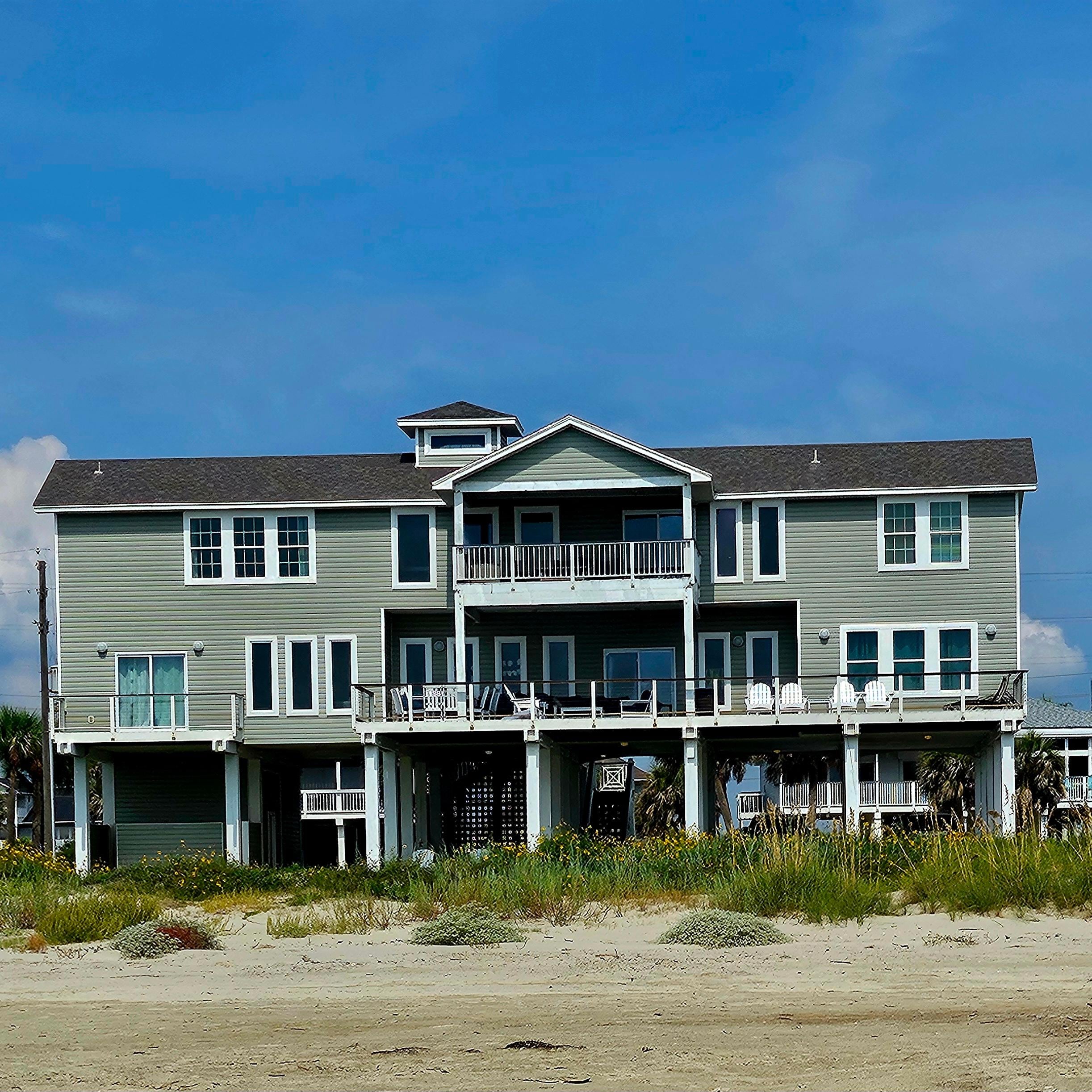 The house itself is ideal for families. It features multiple bedrooms and bathrooms, a fully equipped kitchen, and a large living area perfect for gathering together. The outdoor space is equally impressive, with a generous deck and direct access to the beach, making it easy to enjoy the sun and surf.
