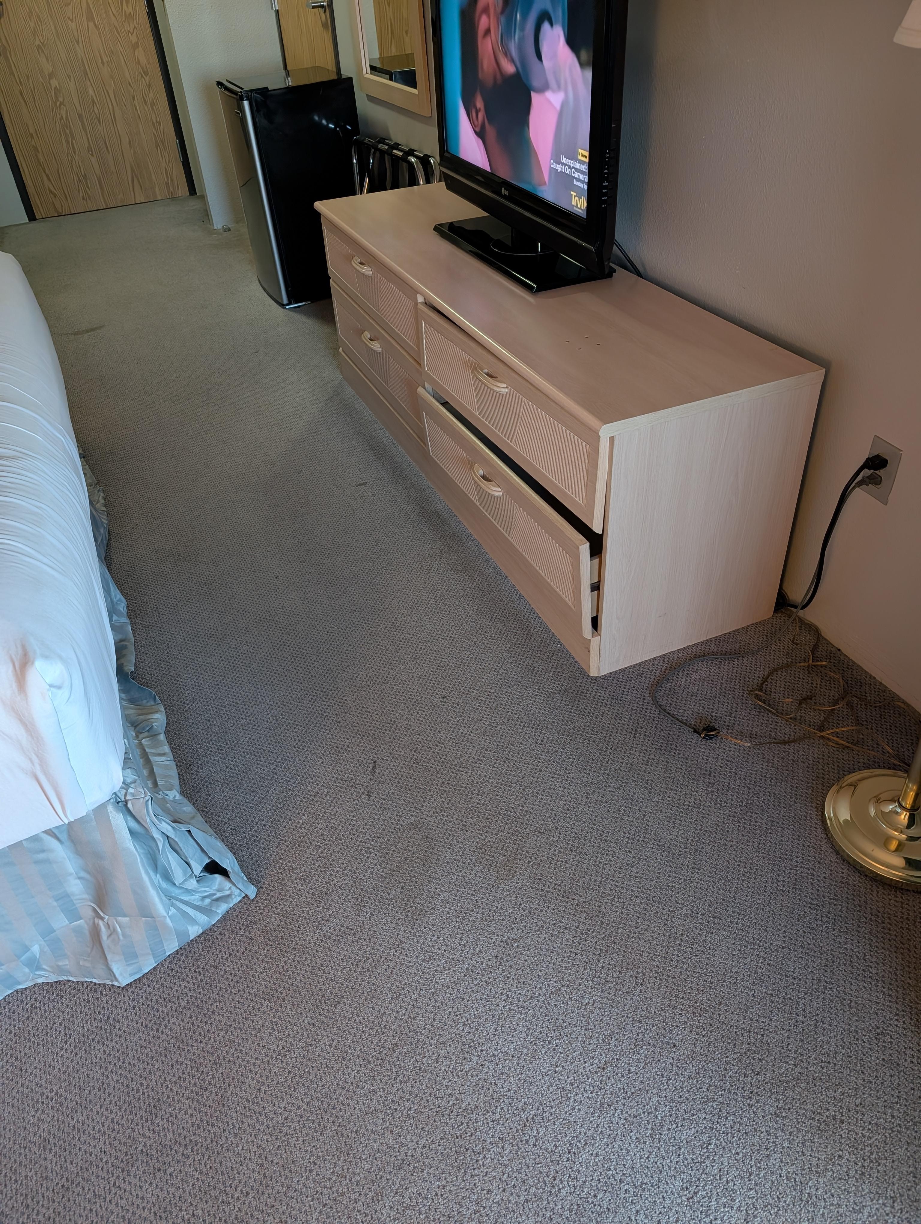 The front desk/ manager was great. Very friendly. But the room hasn't seen a vacuumed cleaner in months. Drawers were broken and off the tracks. Slider door jam filled with flies, spiders and cob webs. Price was too cheap, maybe raise your price and hire a maid.