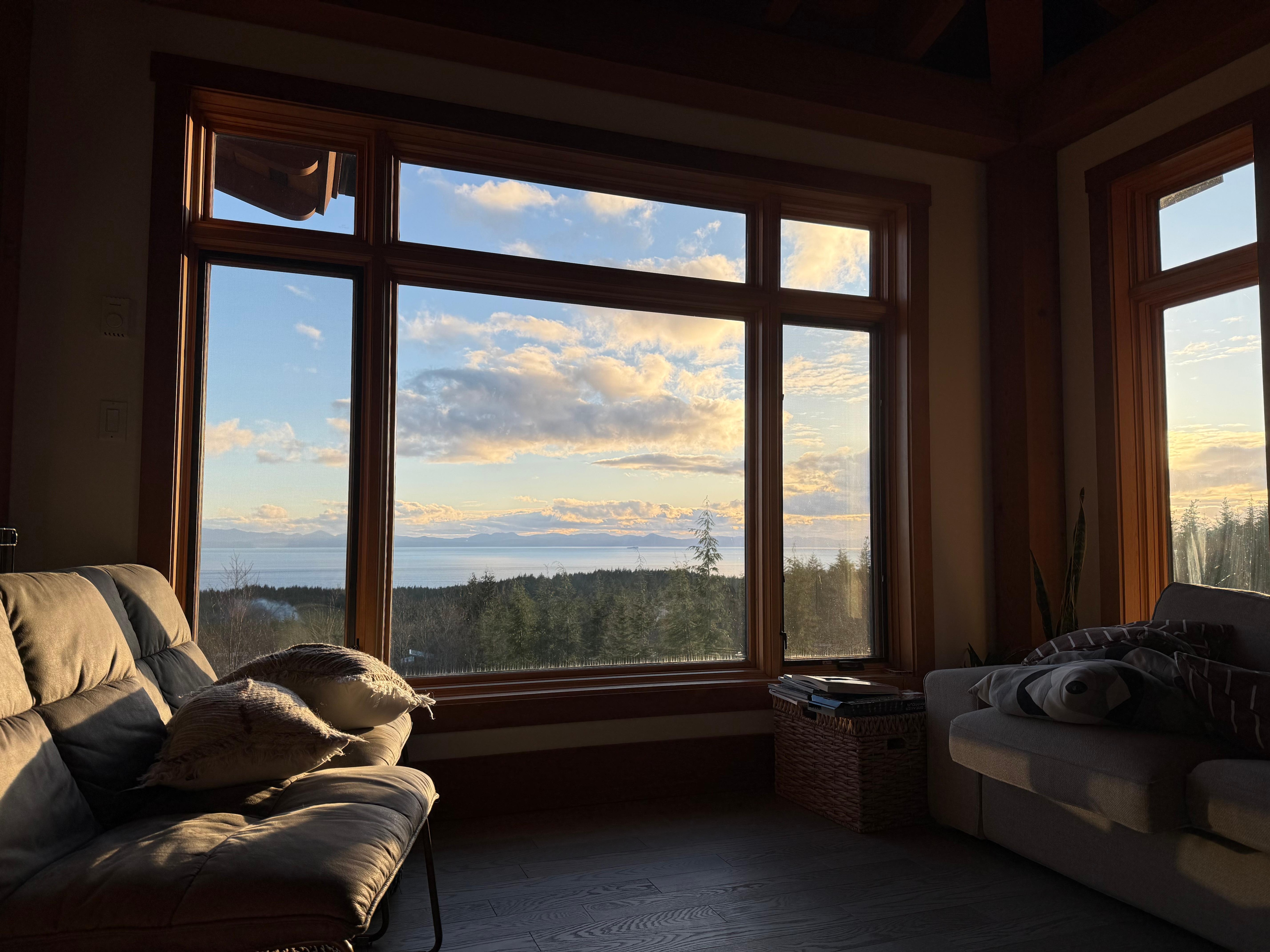 A weekly-long family retreat that satisfied all the criteria. A beautifully designed timber frame home with breathtaking vistas across the straits. Complete with a separate suite for the teens. Large very clean hot tub. A gourmand’s kitchen. Comfortable beds and lots of lounge space. And 4 minutes to the surf at Jordan River!