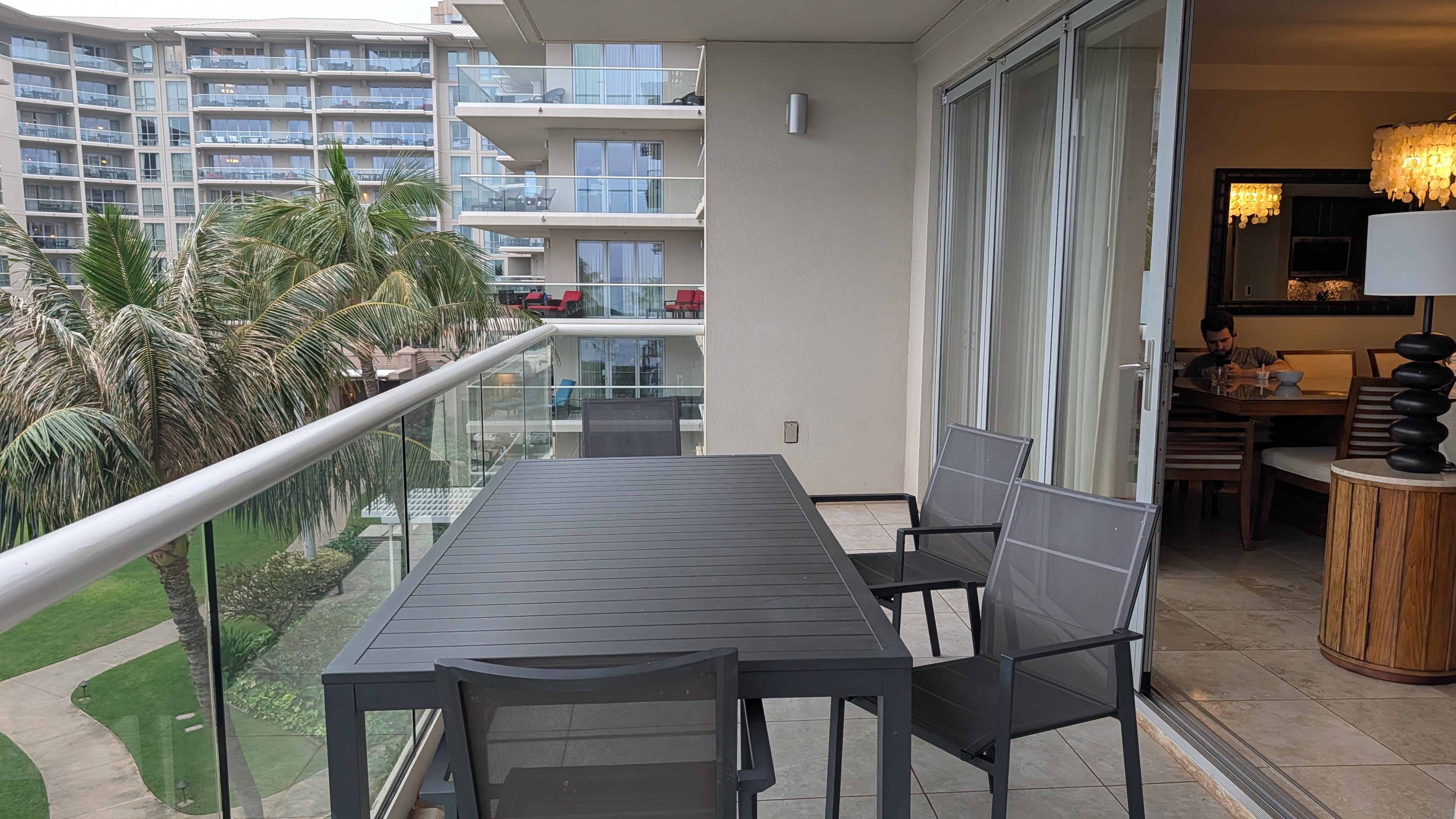 Beautiful view of the ocean from the balcony. Great location and plenty of room for our family of 6.
