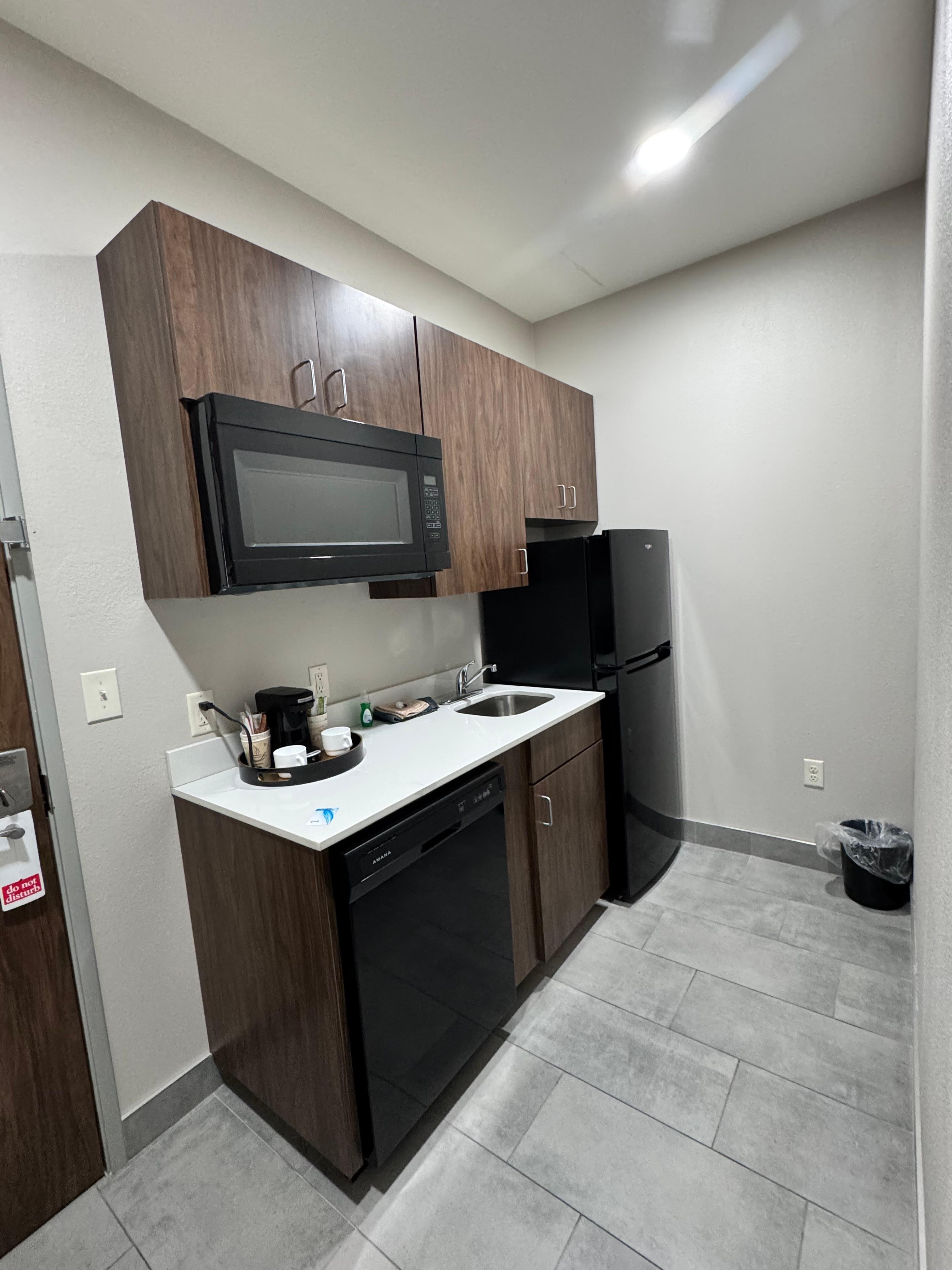 Very clean room, well equipped for an extended stay - not sure you can use the metal pots and pans provided in a microwave but oh well... Check in was pleasant. Efficient use of space for the bathroom- unfortunately area under a boil water notice due to main waterline leak so no showering