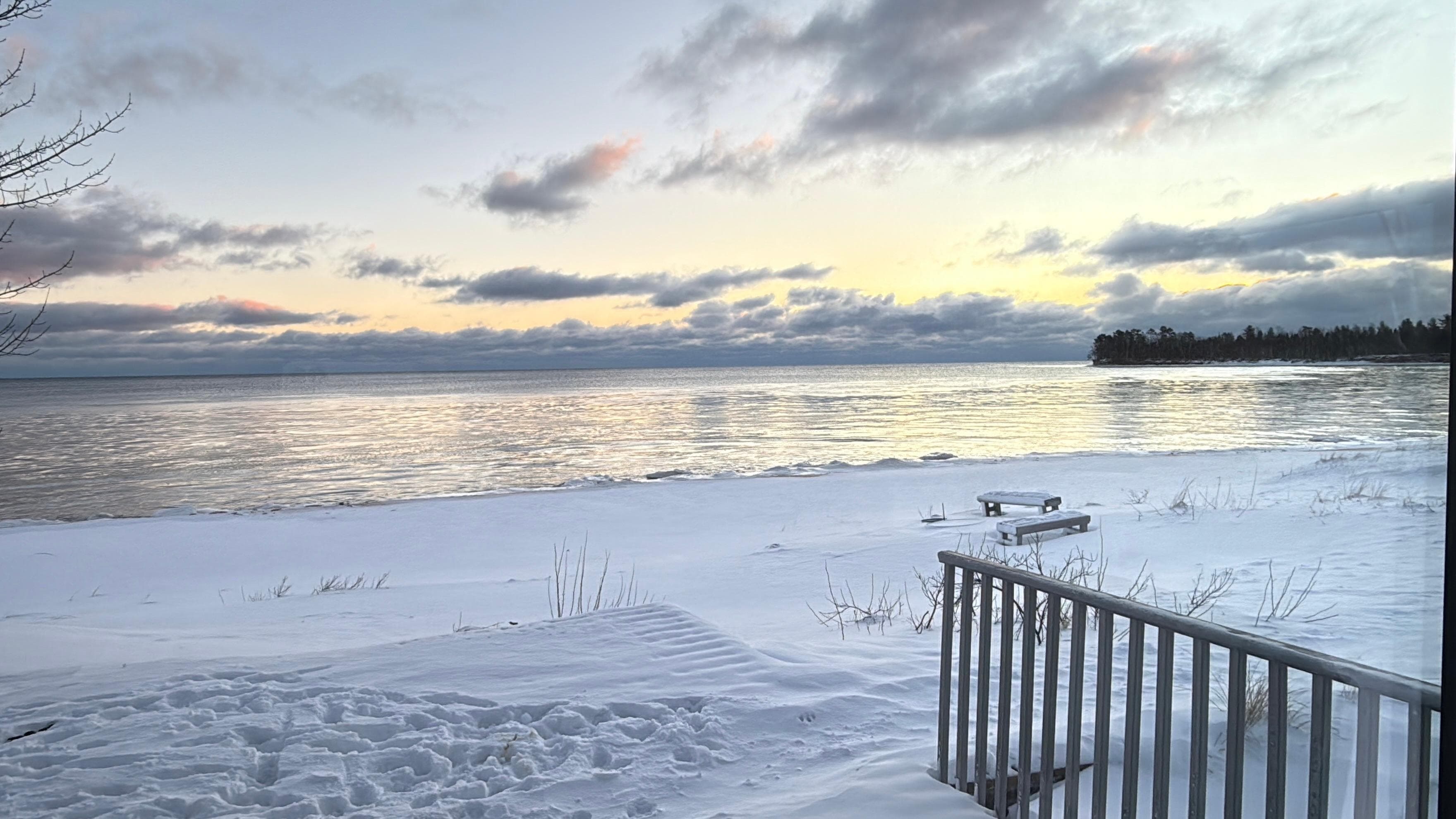 Our week was wonderful, despite some crazy early-mid May weather (which we knew could be the case). The home was very cozy, the views were beyond beautiful. We were greeted with a nice welcome gift on the table, which was appreciated, the home was just as pictured and check in was easy. It was an experience to use the sauna and do a lake plunge, the kayaks were a great feature that we used, and we explored much of the surrounding area. All in all, it was an excellent choice of a place to stay while we explored an area of the UP. The house was well stocked with necessities, the beds were comfy, walking on the long (and secluded at this time of year) beach was soothing and enjoyable.