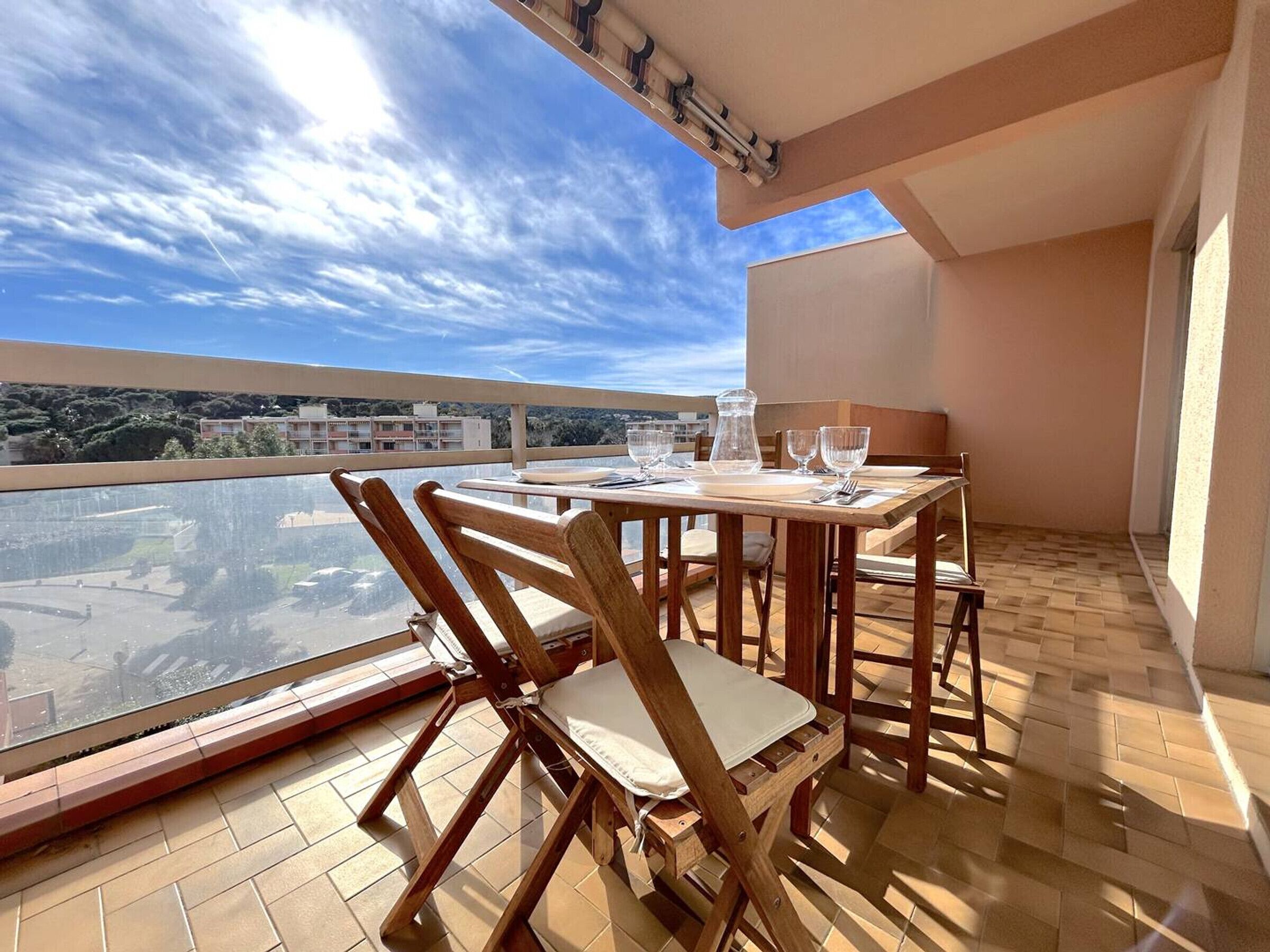 This apartment of 42 m² is located on the 4th floor with elevator of a residence with swimming pool and common tennis court. Can accommodate up to 4 people, it is the ideal place to spend a dream vacation just 2 steps from the beach. The apartment has a terrace of 7 m2 equipped with a refrigerator and a living room of garden to allow you to benefit from convivial and sunny meals. Inside, you will enjoy the benefits of comfort for a relaxing holiday: my apartment is classified two stars by the organization Inauris referenced to the Mayor of Le Lavandou - 1 open equipped kitchen - 1 shower room with WC - 1 bedroom with 1 small double bed and 2 folding single beds - 1 living room opening onto the balcony, with 1 sofa, 1 closet bed (sleeping 140) and 1 TV - 1 dining area with seating for 4 All essential household appliances are provided (washing machine, iron and ironing board, hairdryer, dishwasher, toaster, fridge, hotplates, microwave and coffee maker). You will also have access to a private parking space.