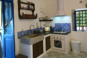 Altes eolisches Haus sehr geschmackvoll und hübsch renoviert. Riesige Terrasse mit ganztägigem Schatten. Zudem großer Garten mit Zitronen- und Mandelbäumen. An besonders exponierten und idyllischen Stellen kleine Sitzgruppen