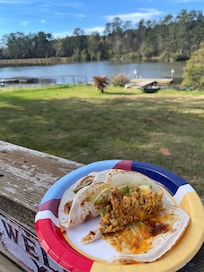 Yes, every house at 'Kokomo Kove' - Waterfront Country Texas Getaway comes with a deck/patio and some offer water views.