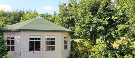 La casa se encuentra en los terrenos del hotel del propietario. Los huéspedes pueden utilizar todo el espacio exterior. Los huéspedes también pueden utilizar el hotel para el desayuno, a un costo.