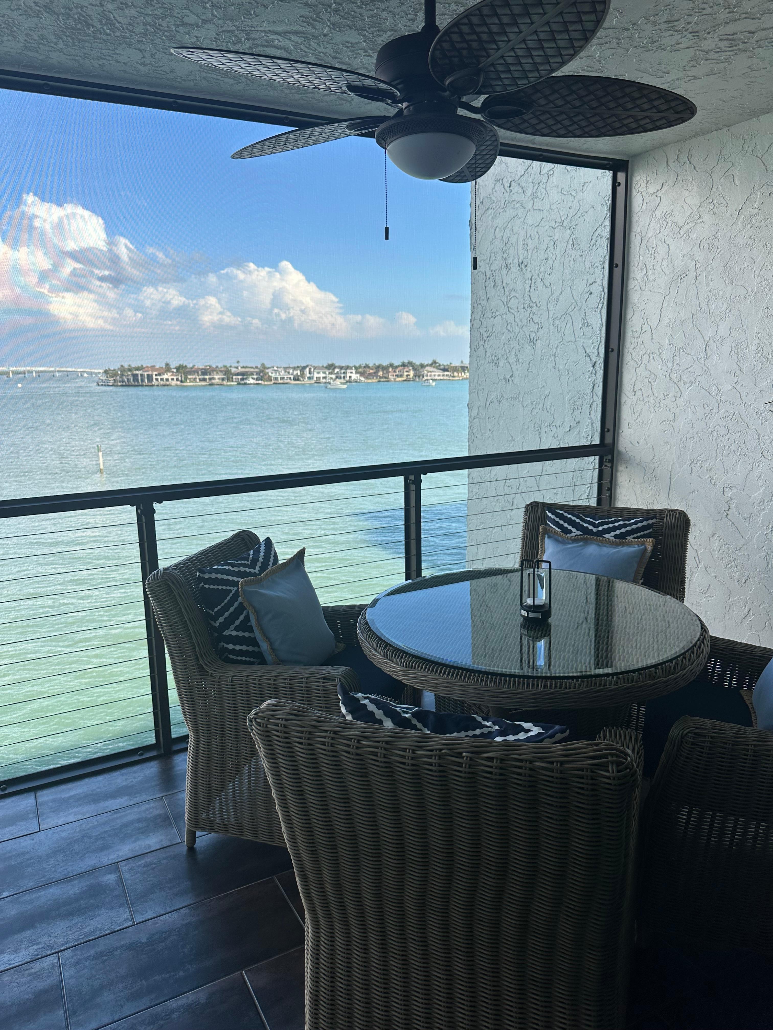 The condo was exactly as pictured…beautiful, clean and very well appointed. The attention to every detail was impeccable. We truly enjoyed the comfortable chairs on the lanai watching the boat traffic right in front of us. We frequently travel to Marco Island and this will become our first pick for future stays!!!