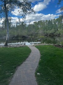 Waterfront vacation home with kitchen and patio
