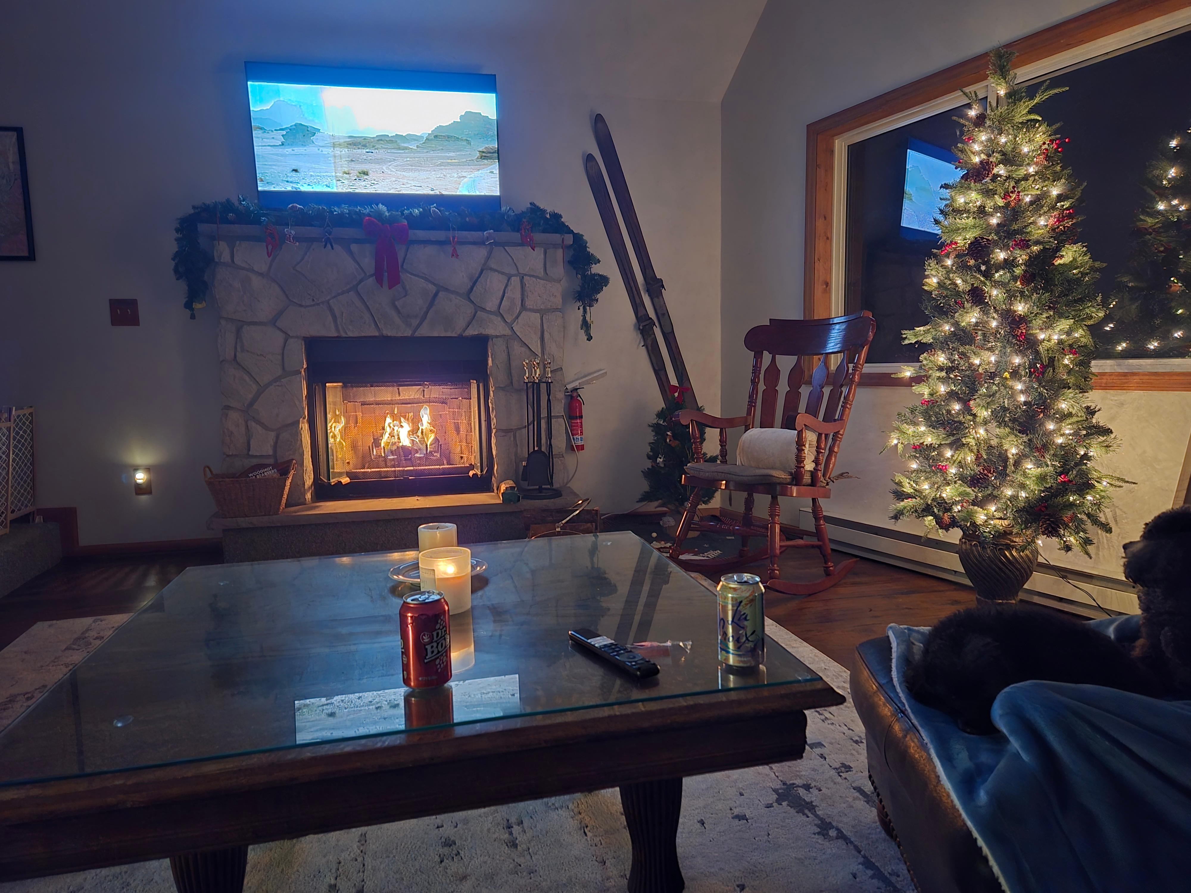 El espacio Ingrese a una sala de estar de concepto abierto luminosa y acogedora donde el cálido resplandor de la chimenea de piedra marca la pauta para noches acogedoras. Los techos abovedados con ventanas grandes y modernas dejan entrar mucha luz natural al tiempo que ofrecen vistas del tranquilo bosque a las afueras. La sala de estar cuenta con asientos lujosos, un televisor inteligente y un ambiente acogedor para juegos, risas o simplemente relajarse. Habitación de tres estaciones Disfrute de la belleza del aire libre sin la molestia de los molestos mosquitos en la espaciosa habitación de tres estaciones. Este porche con mosquitero ofrece un oasis cómodo y libre de insectos para tomar su café matutino o relajarse por la noche, rodeado de los relajantes sonidos de la naturaleza.