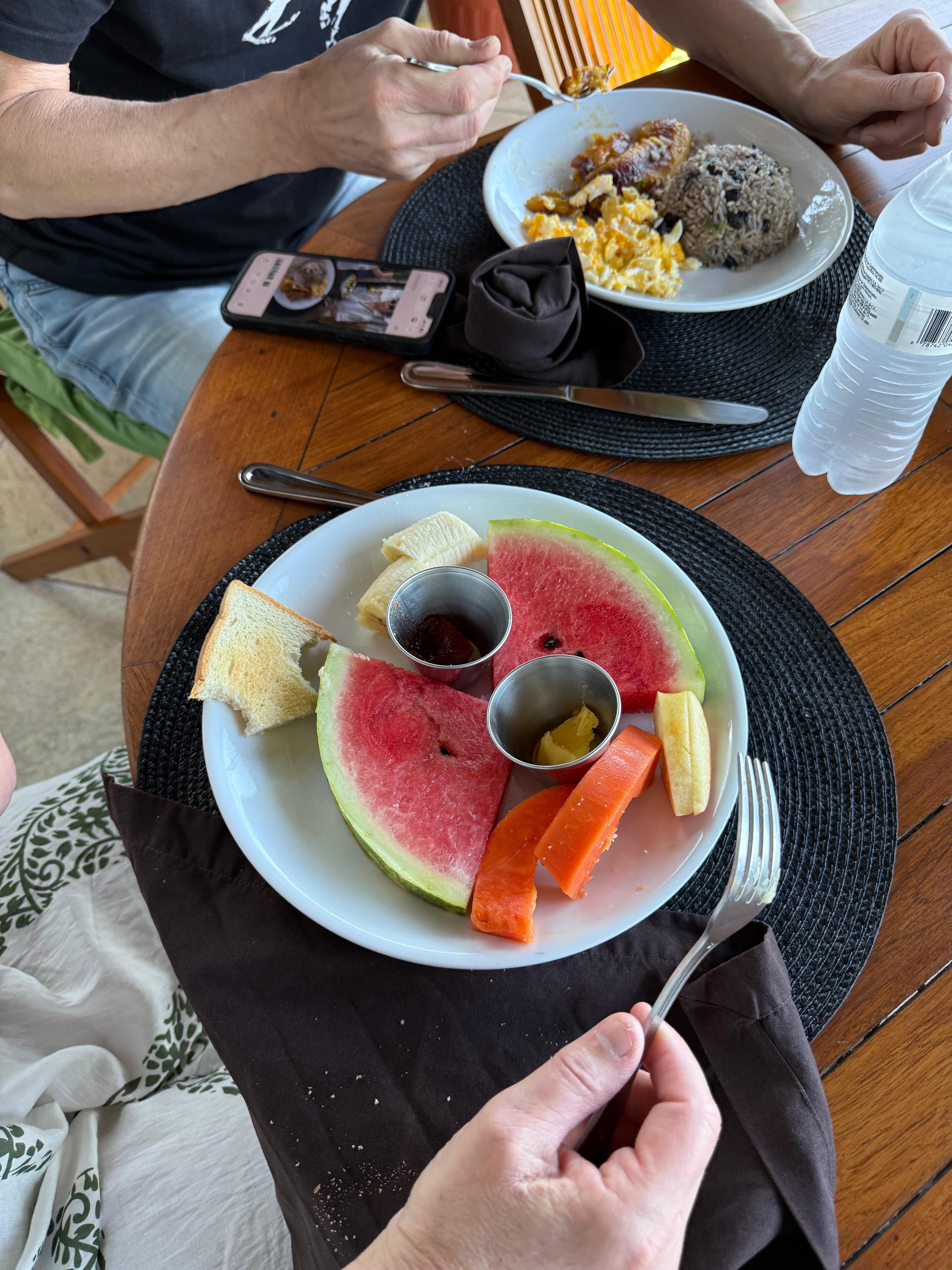 Service was impeccable. The concierge ordered us taxis and booked tours for us. The house keeper cleaned every day + you get one round of washing of clothes at the lavanderia for free. Fresh beach towels every day. The breakfast is served at the terrace; you choose from a menu the night before and choose a time. Fresh fruits, gallo pinto (rice and beans), eggs and pancakes. The kitchen has everything we needed - a bag of local coffee included. The beach and national park is only a 10 mins taxi ride away, and the neighborhood has plenty of restaurants and (over prized) small supermarkets.