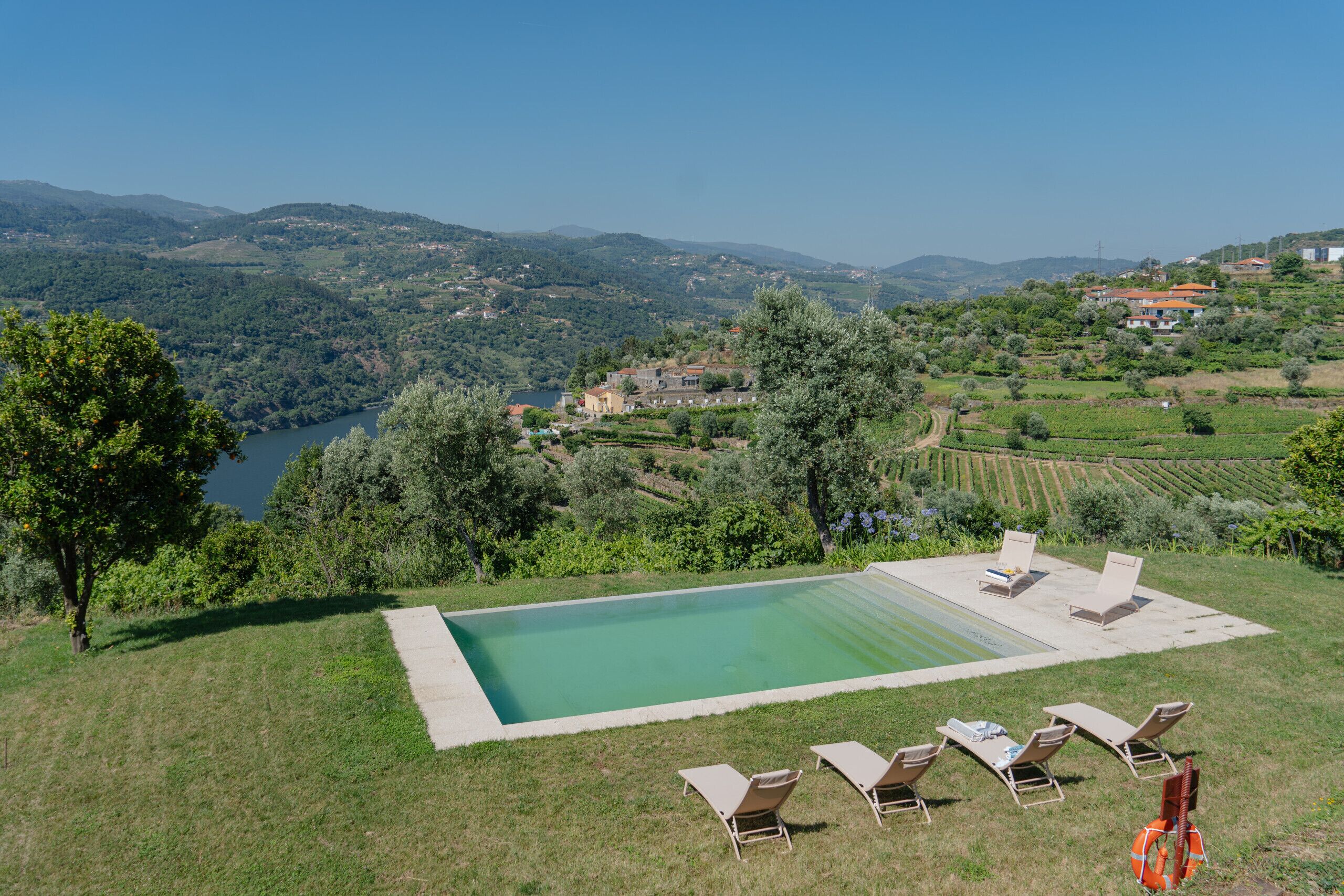 A blend of historic charm and modern comfort!With over 800 square meters, Casa da Granja is ideal for leisure stays with family or groups of friends. This 17th century property perfectly combines historic elegance with modern amenities. Casa da Granja consists of the main house and 3 additional buildings.The Tower, one of the buildings of Casa da Granja, ideal for 2 people, consists of a historic, elegant and charming room. No need to worry about bringing sheets or towels; everything will be ready for you on arrival!The entire property is equipped with high-speed Wi-Fi and cable TV, allowing you to stay connected and entertained throughout your stay.There is an open space, consisting of a fully equipped kitchen next to the dining room and living room, offering incredible views of the private gardens. Whether you're preparing a banquet or a simple meal, you'll find everything you need here.The exterior of Casa da Granja is a real highlight. Enjoy the magnificent private pool or take a peaceful stroll through the beautiful gardens. The river views and ample outdoor space provide a tranquil setting for your stay.Check-in and ReceptionThe property can only be reached by car, but there is free parking inside the villa.We do not have reception at the house, so please inform us of your arrival in advance.Activities and attractions nearby:The Douro is historic and magical. As soon as you enter the region, you can feel its essence and its people.Everything in the Douro is worth visiting, which is why we have a wide range of Local Experiences to enjoy and complete your stay.All experiences are organized privately with certified partners, guaranteeing maximum security and privacy.We have various tours with visits to different farms and wine tastings. You can also visit different lands in the Douro region, such as Lamego or Favaios, and experience their customs and traditions.Taking a cruise along the magnificent Douro River, from Régua to Pinhão, is also a memorable experience you can't miss!The viewpoints are the highlight of the region. Therefore, we offer visits to the main ones, with the possibility of adding a picnic and tasting regional products.Get in touch with our team who will help you personalize your trip and make you feel the essence of the Douro!TYPE OF ACCOMMODATION: Villa for rent with private pool.