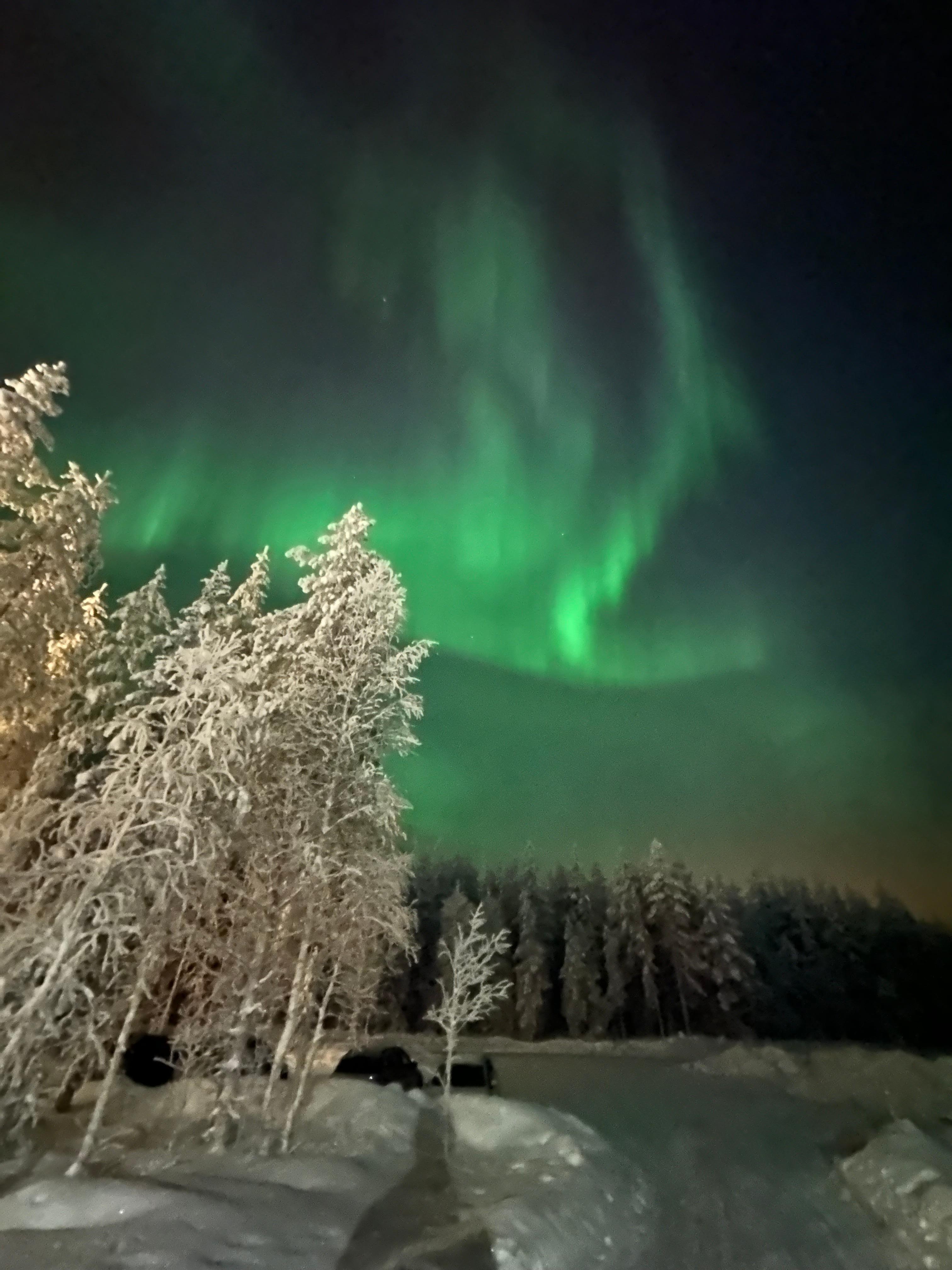 2泊滞在で2日目夜にオーロラみれました!北の空にカーテンのようにひらひらしていてとにかく建物が新しく綺麗でよかった。車でそれぞれの部屋まで近づけるので荷物を運ぶにも便利。