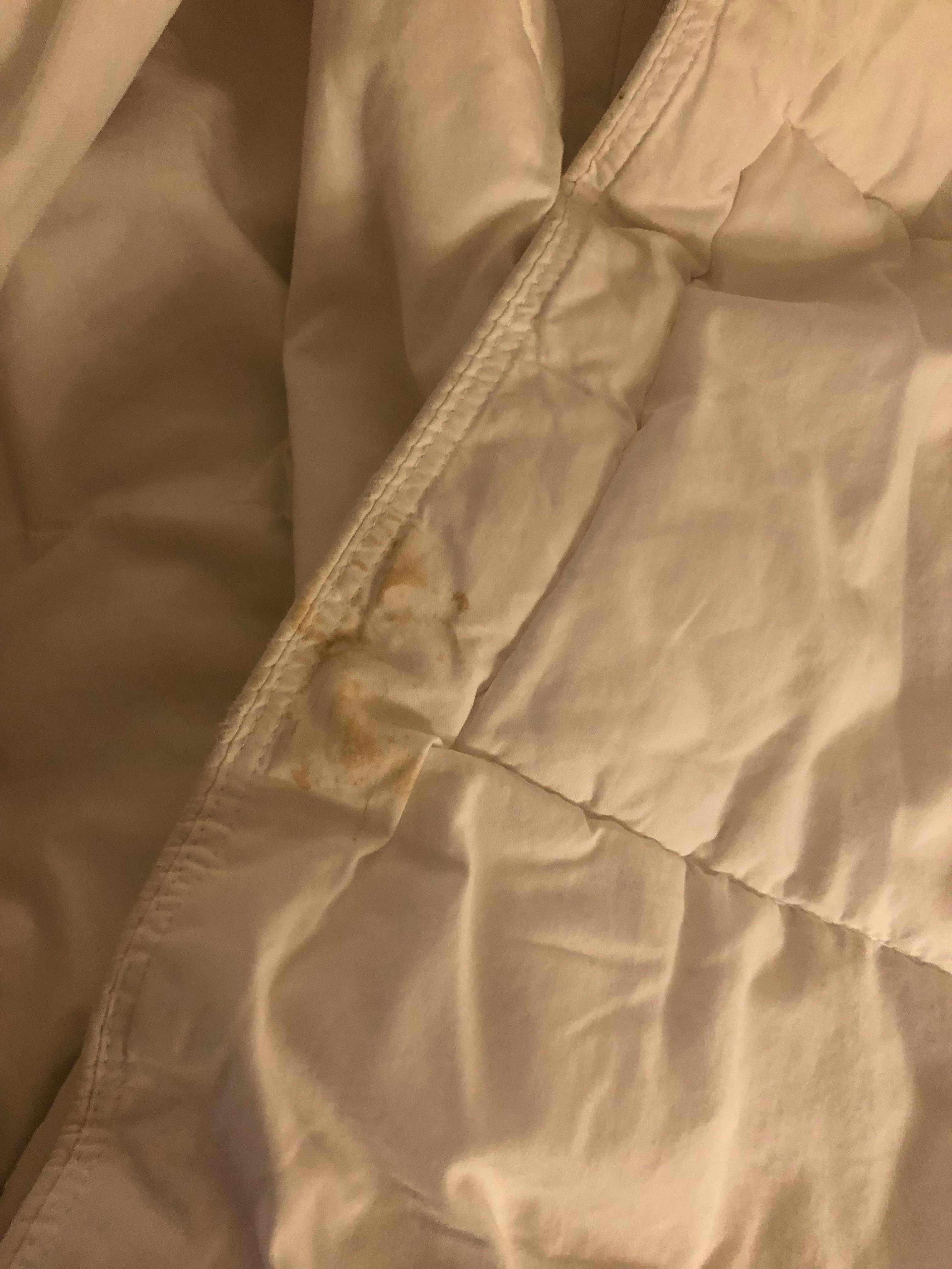 I’m just starting my 2nd trimester pregnant, so seeing all the hairs etc made me very nauseous and I ran to the bathroom gagging. We would have considered requesting new bedding if it wasn’t so late at night already.