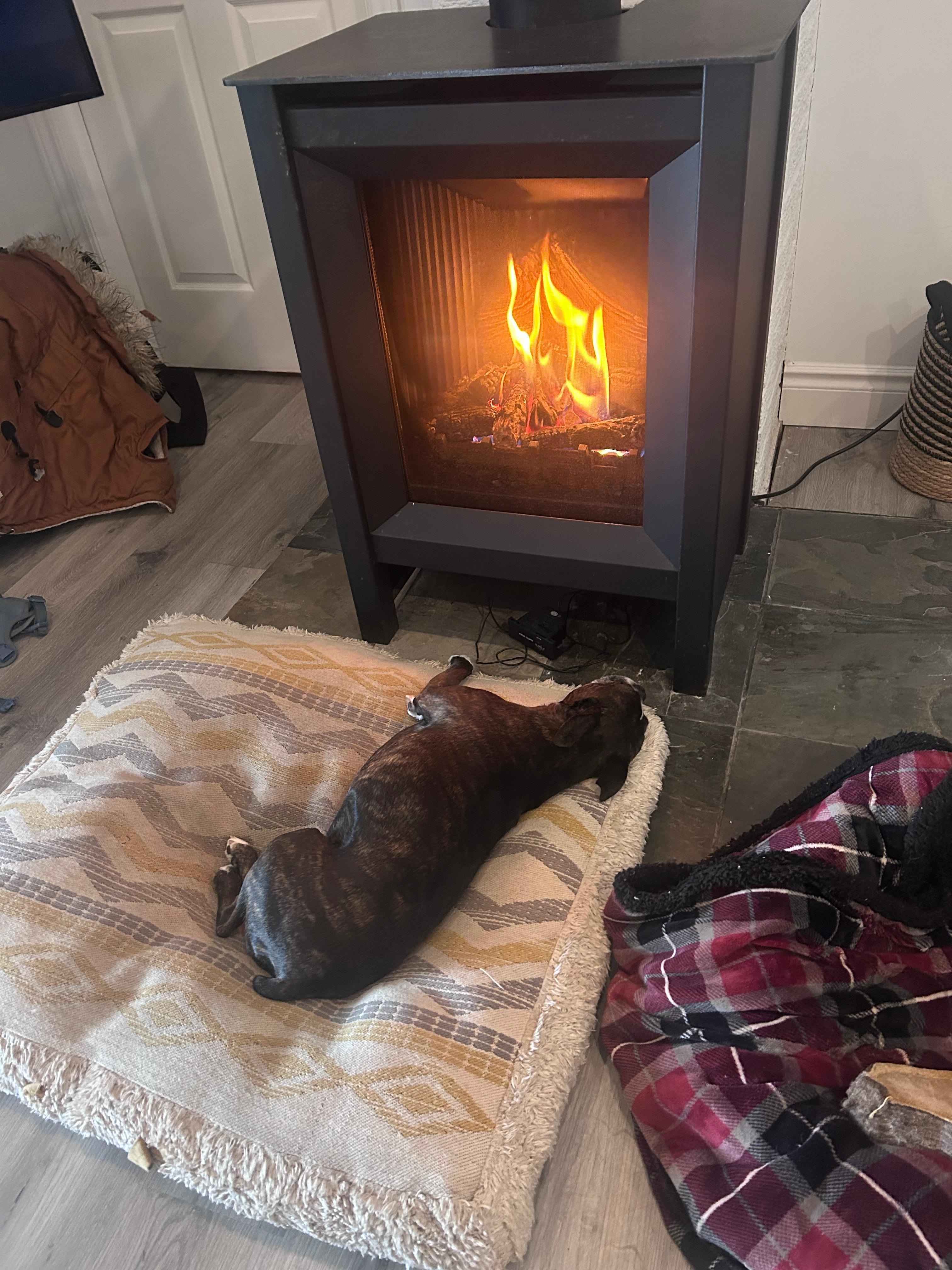 Televisión y chimenea