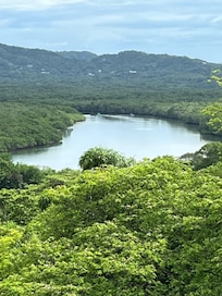 This home is absolutely stunning. The service that comes with it is 5star, Katherine is excellent at answering questions and her staff are professional and efficient. Highly recommend this home for a larger group as each bedroom is an en suite and the living space is quite large. The views are breathtaking and we had the monkeys several of the days that we were there in the trees near us and that was very exciting. The road to the home can be rough as it is dirt with potholes, but the gas golf carts we rented handled it just fine