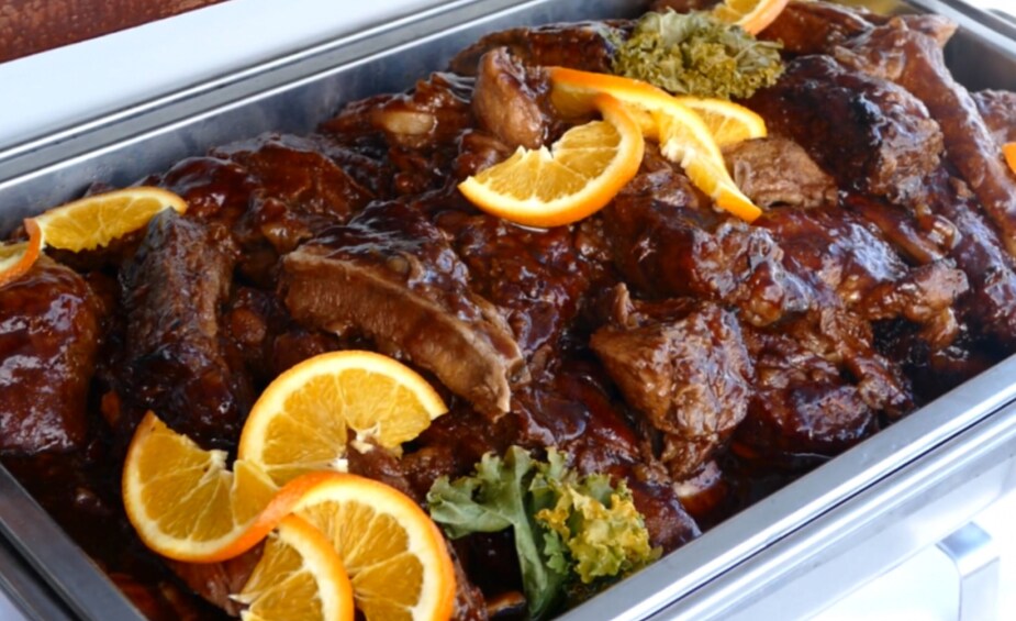 Delicious Bahamian buffet(BBQ Ribs, Lemon Pepper Chicken, Mixed Green Salad, Pasta Salad, Peas & Rice Dessert) Friday's Menu Has Steam Fish in replacement of the BBQ Ribs