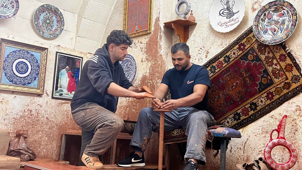 From here, travel to Avanos, a charming town located along the Kızılırmak (Red River), famous for its centuries-old pottery tradition. Walk through cobblestone streets in the old town and visit a ceramic and tile workshop, where you'll watch skilled artisans shape, paint, and fire pottery using techniques passed down since the Hittite era. You’ll even have the chance to try your hand at the potter’s wheel.