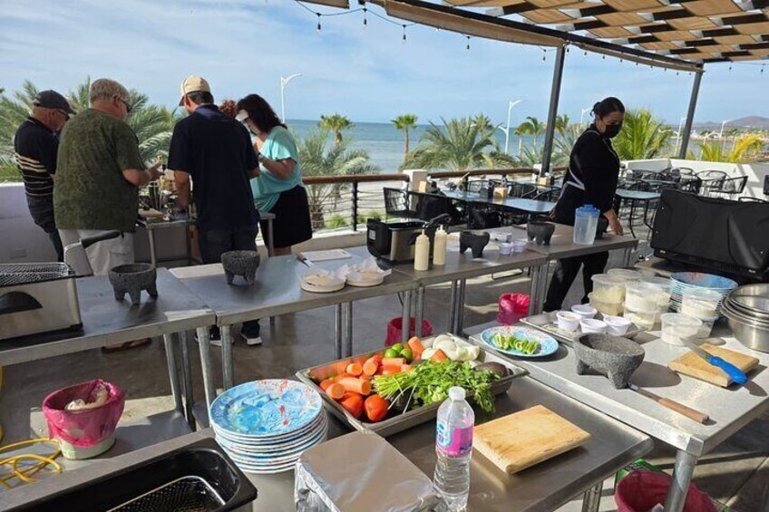 - The experience is regularly taken on the terrace of our restaurant, but the area may not be available at the last minute and without notice due to weather or other situations. If that happens, the area to be used will be on the first floor, overlooking the sea.