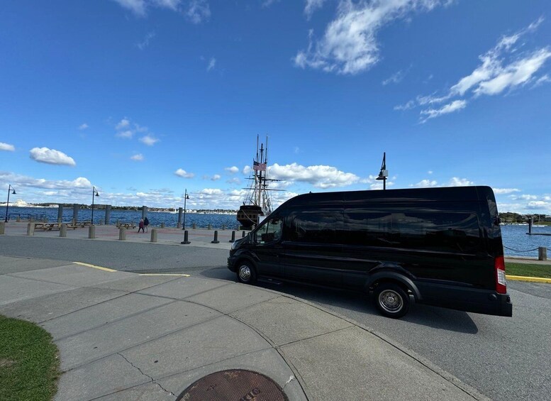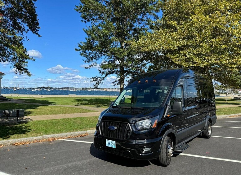 Board our 14 passenger black luxury van at 23 Americas Cup Ave in Newport, Rhode Island and enjoy Newport’s best narrated scenic tour in luxury and comfort! Our tour features a 90 minute narrated tour covering over 150 points of interest followed by an additional 90 minute tour inside The Breakers mansion provided by the Newport Preservation Society. Approximately 180 minutes later, you’ll return to your original pickup location at 23 Americas Cup Ave. Parking is available at the transit center lot for a fee.